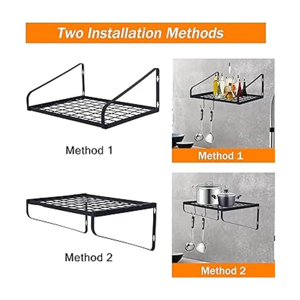 2 métodos de bricolaje Hay 2 métodos de instalación para el estante para macetas colgantes. Coloca tus soportes hacia arriba o hacia abajo para instalar el paquete de almacenamiento en diferentes estilos. Puedes instalar el estante para ollas de la manera que quieras. Diferentes métodos de instalación harán que tu cocina muestre un estilo diferente.
