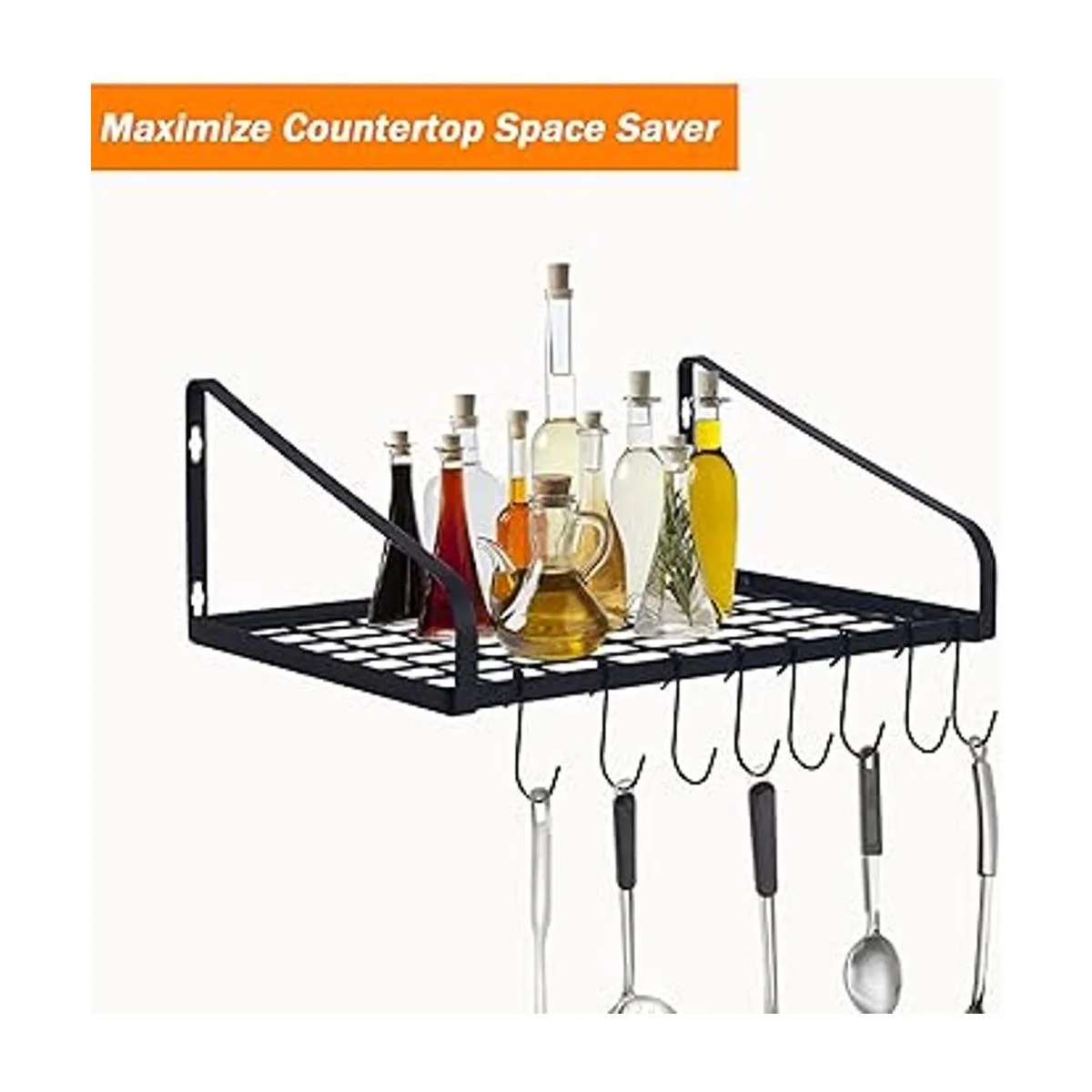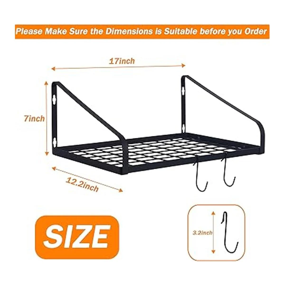 Gran capacidad de almacenamiento: con gran área para colgar, puedes poner muchas cosas en el gran estante colgante para ollas como ollas de acero inoxidable, cuencos de vidrio, vajilla y botellas de condimentos. Y los 10 ganchos adicionales en forma de S también te ayudan a colgar más ollas y sartenes y otros utensilios de cocina. La capacidad máxima para colgar es de 70 libras con una instalación adecuada.
