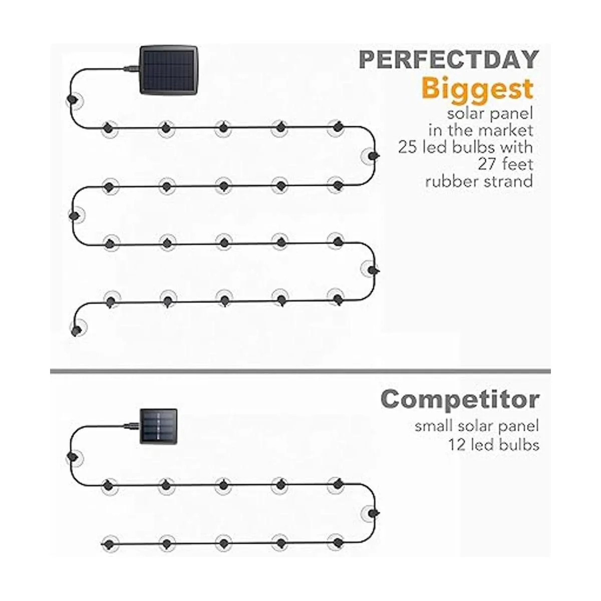 PERFECTDAY Tira de luces solares, luces LED inastillables para exteriores G40 con 25 bombillas, luces impermeables para patio de 27 pies