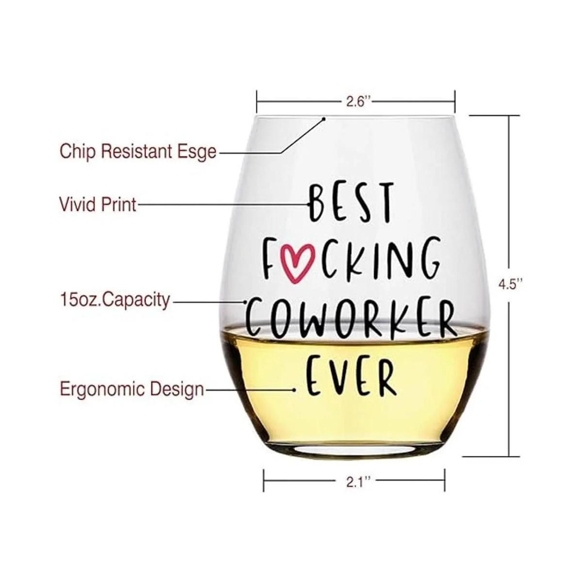 Perfectinsoy Best Coworker Ever Copa de vino, divertido regalo de compañera de trabajo para ella, mujer, esposa, hermana, madre, tía, abuela, hijo, hija, marido, amiga, despedida o marido, regalo para hombres y mujeres