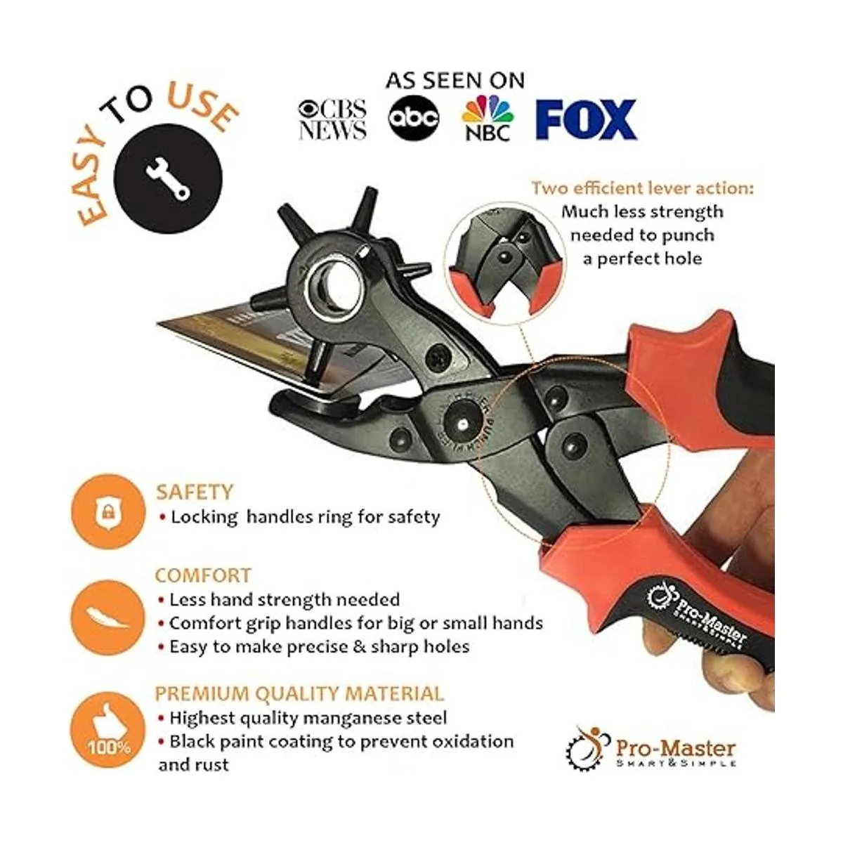 Obtén el ajuste y la comodidad adecuados añadiendo agujeros adicionales para ajustar tu ropa y otros accesorios. Perfecto para cinturones, bolsos, correas de reloj, sillín, collares de mascotas, tarjetas de almacenamiento, etc. Ideal para trabajo largo y repetitivo sin causar dolores de manos o ampollas porque las asas están acolchadas, antideslizantes y ergonómicas.