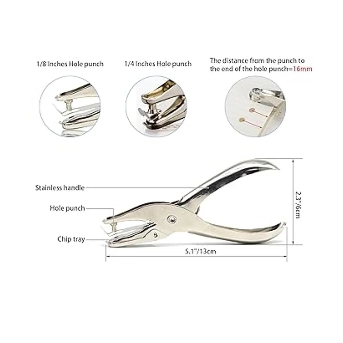 Dos tipos de tamaño: contiene perforaciones redondas de diámetro de 1/4 y 1/8 pulgadas, simplemente elige el tamaño que necesitas, no tienes que preocuparte por perforar el tamaño equivocado.