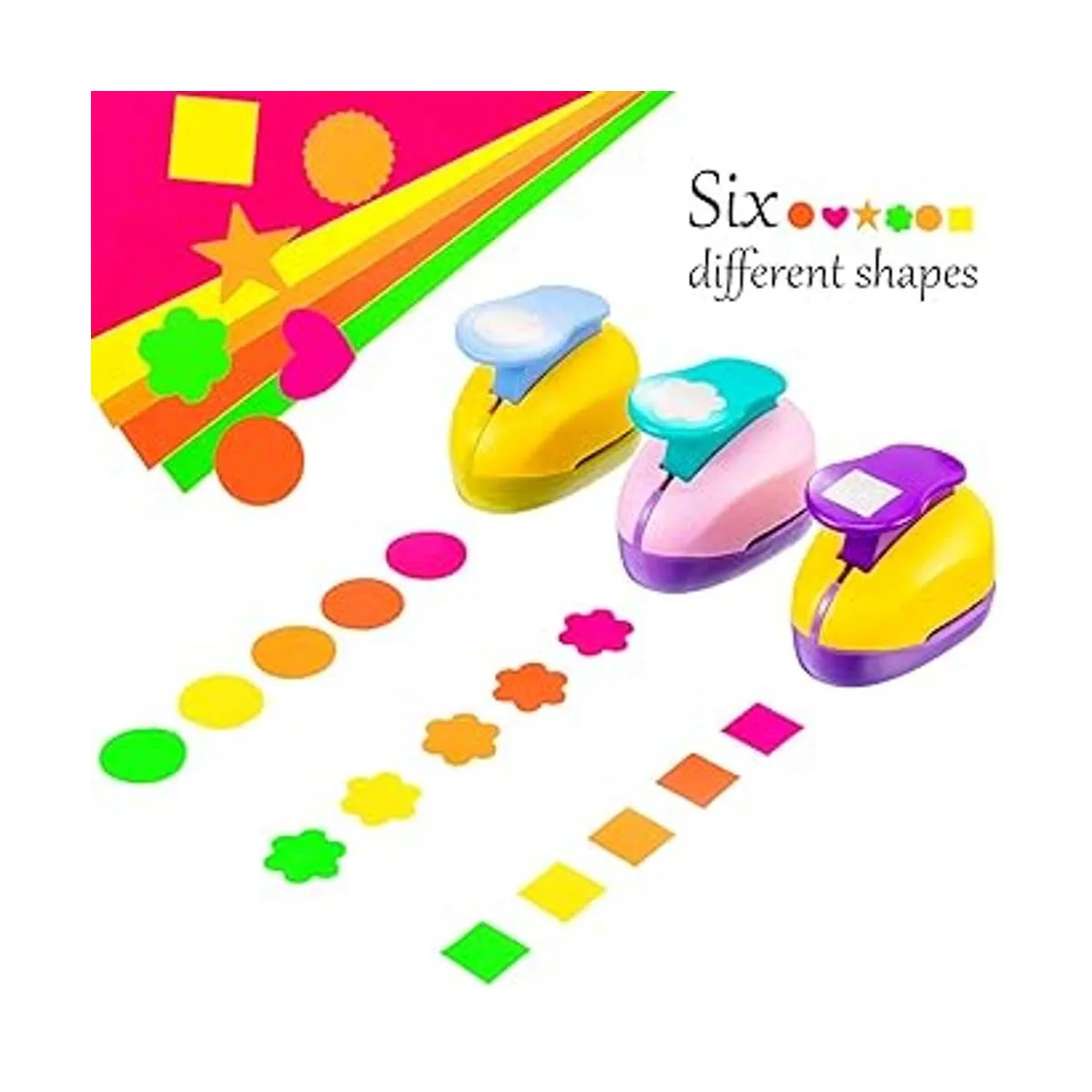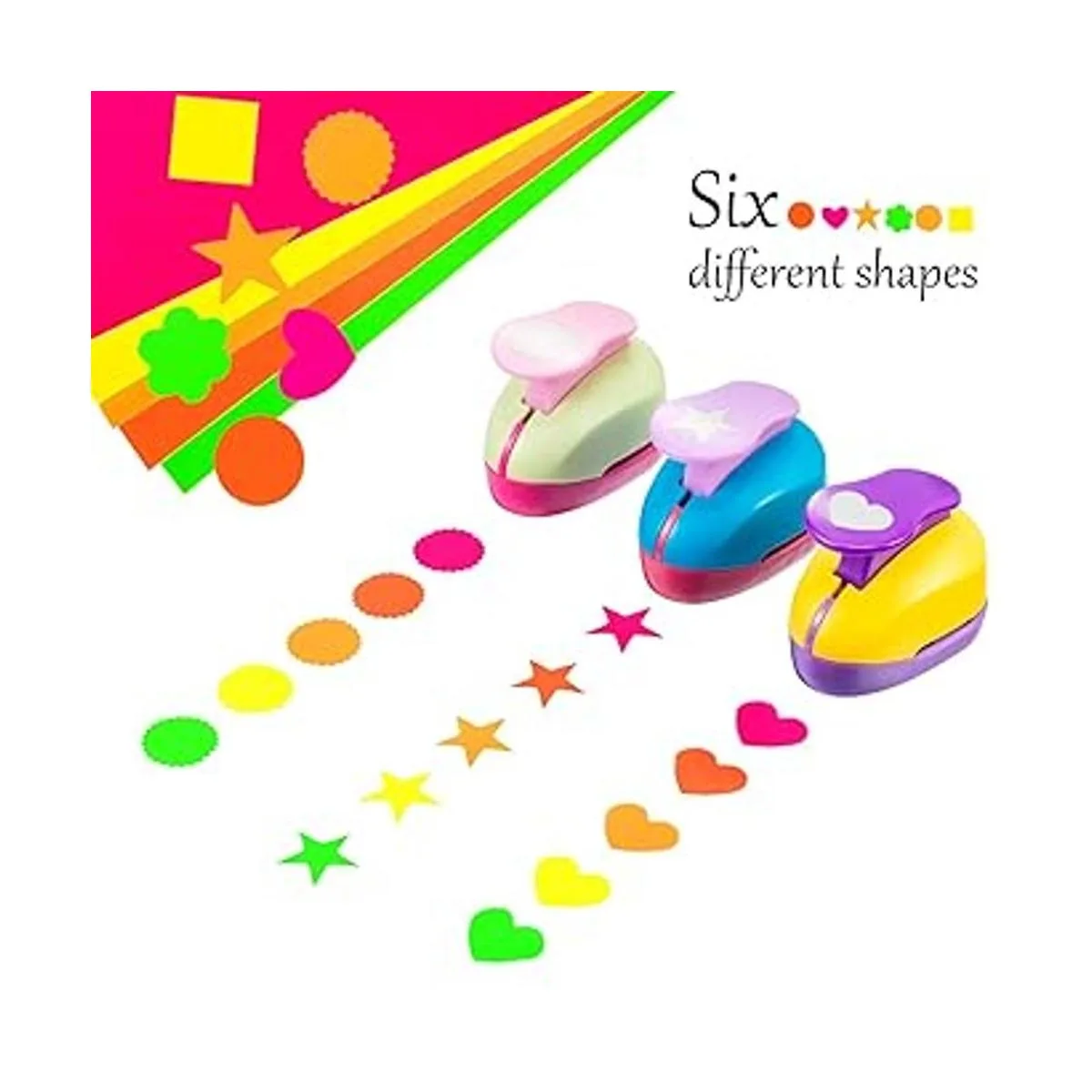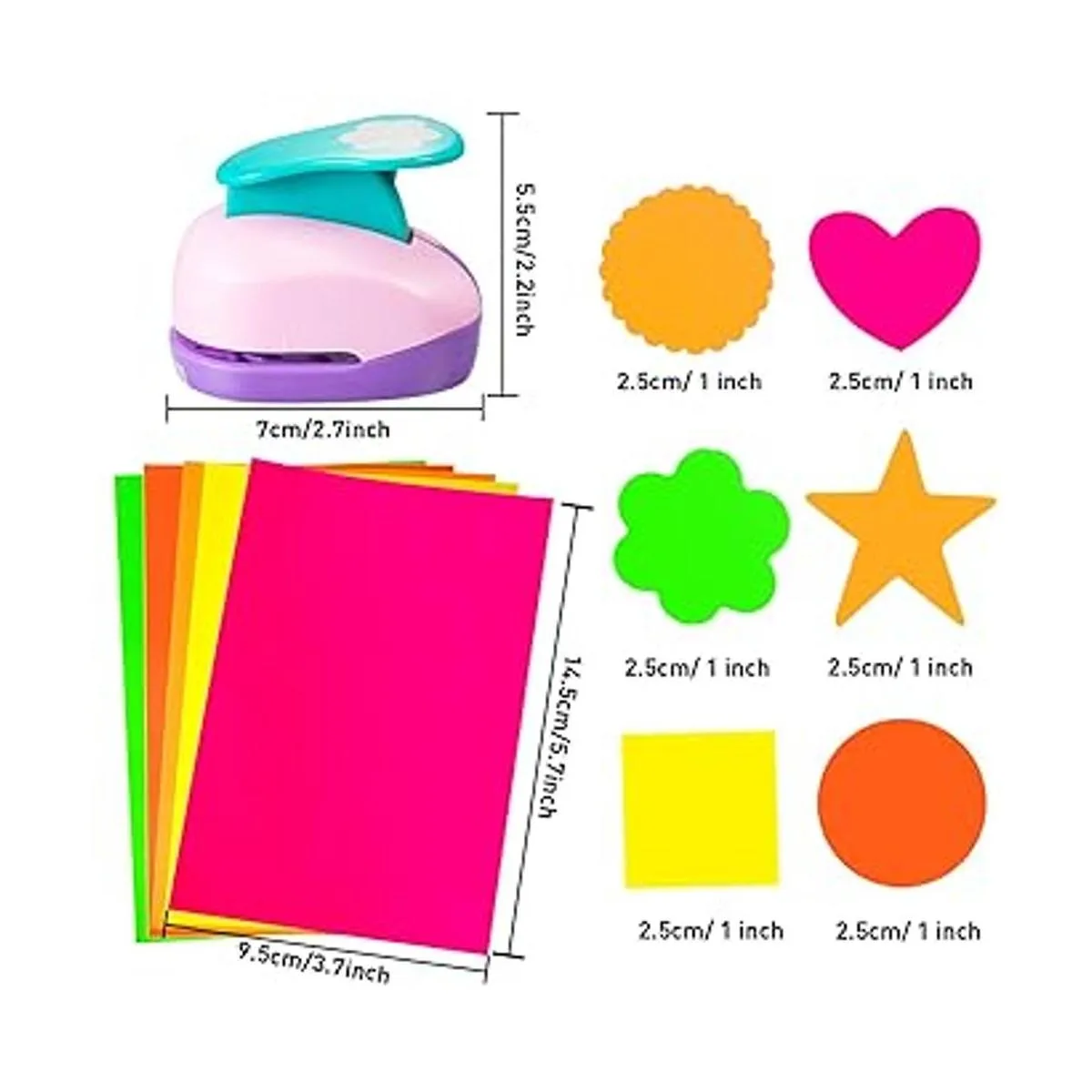 Cantidad: viene con 6 perforadores de papel para manualidades en 6 estilos diferentes y 10 piezas de papel adhesivo colorido para manualidades