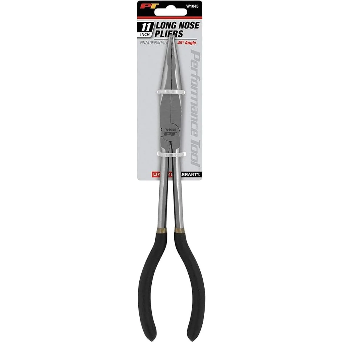 Performance Tool W1045 Alicates de punta larga doblados de 45 grados de alcance largo de 11 pulgadas
