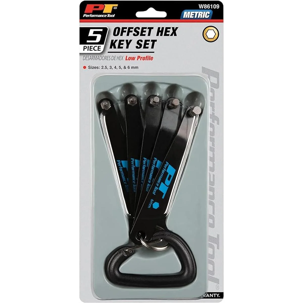 Performance Tool W86109 Juego de herramientas de llaves hexagonales métricas de perfil bajo para talleres y garajes, negro, juego de 5 piezas
