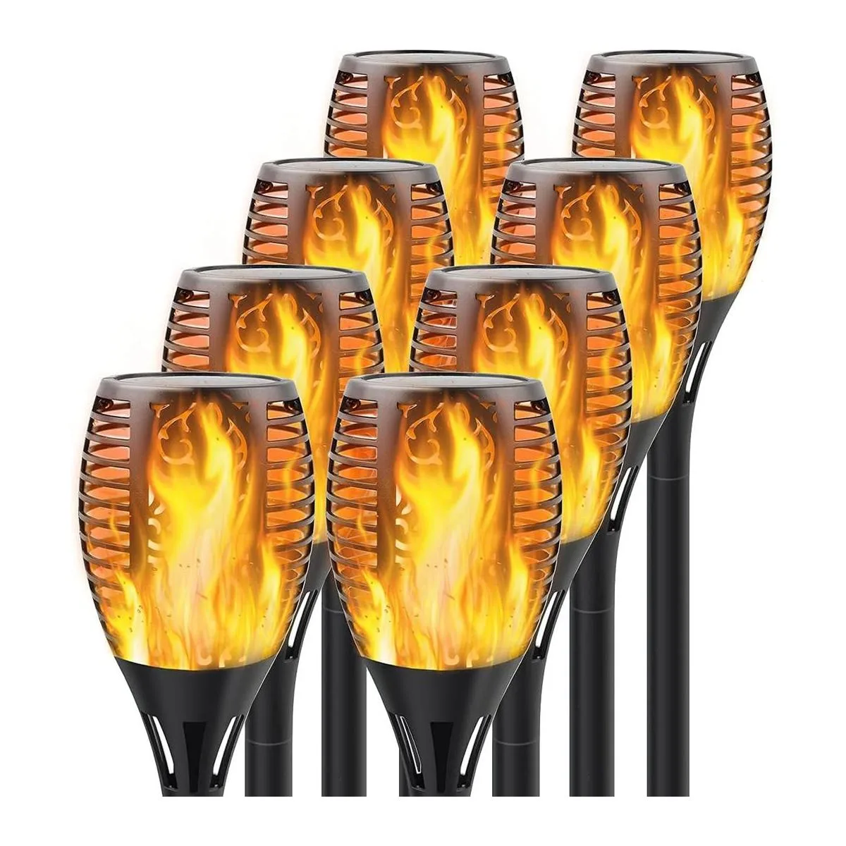 Permande Antorcha solar con llama parpadeante, luz de jardín con efecto de fuego, encendido y apagado automático para el amanecer, decoración de paisaje impermeable al aire libre, luz de antorcha de seguridad alimentada por energía solar para patio, paquete de 8