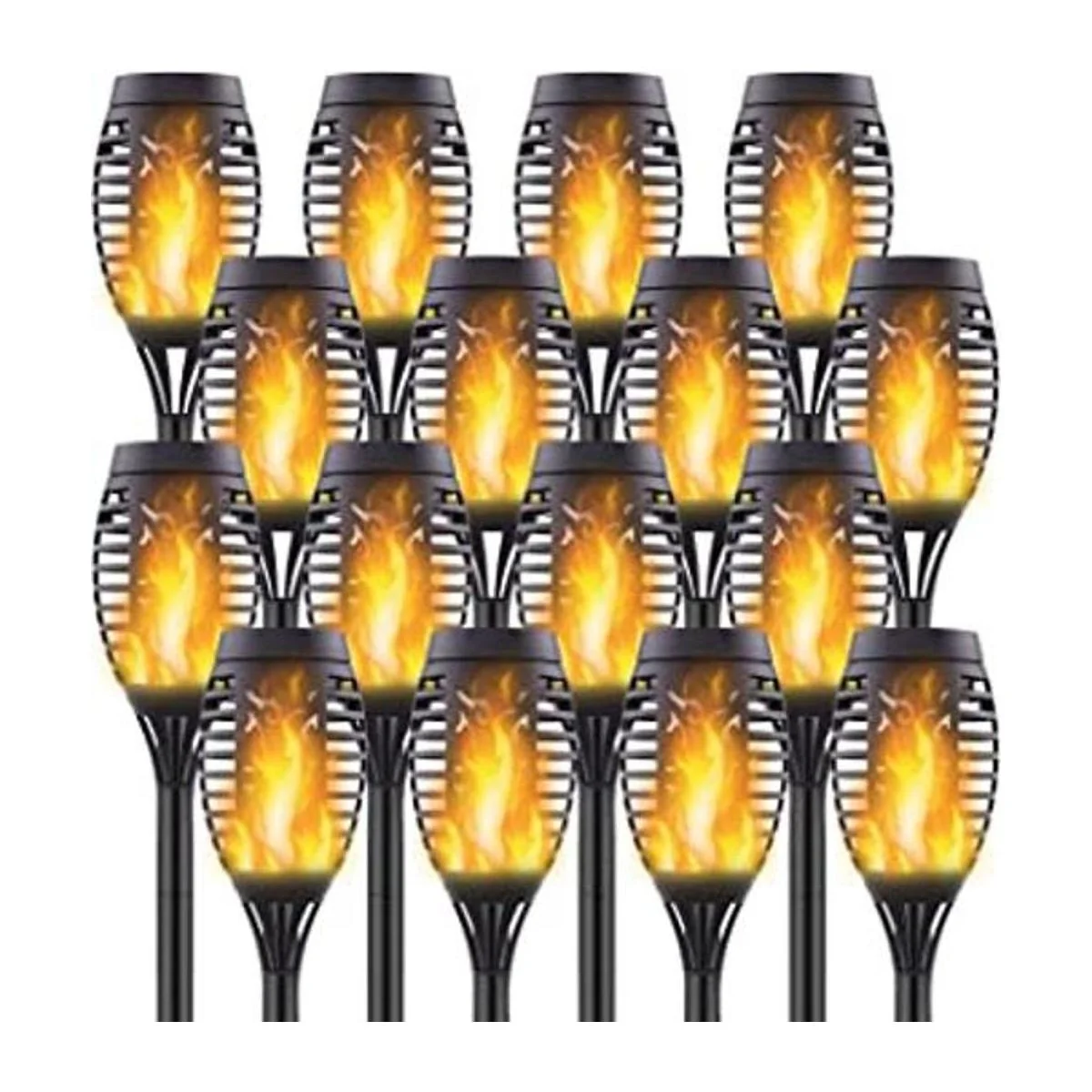 Permande Paquete de 16 luces solares mejoradas para exteriores, mini luces solares de antorcha con llamas parpadeantes, decoración de paisaje impermeable, luces de llama para jardín, camino, patio, encendido y apagado automático del atardecer al amanecer