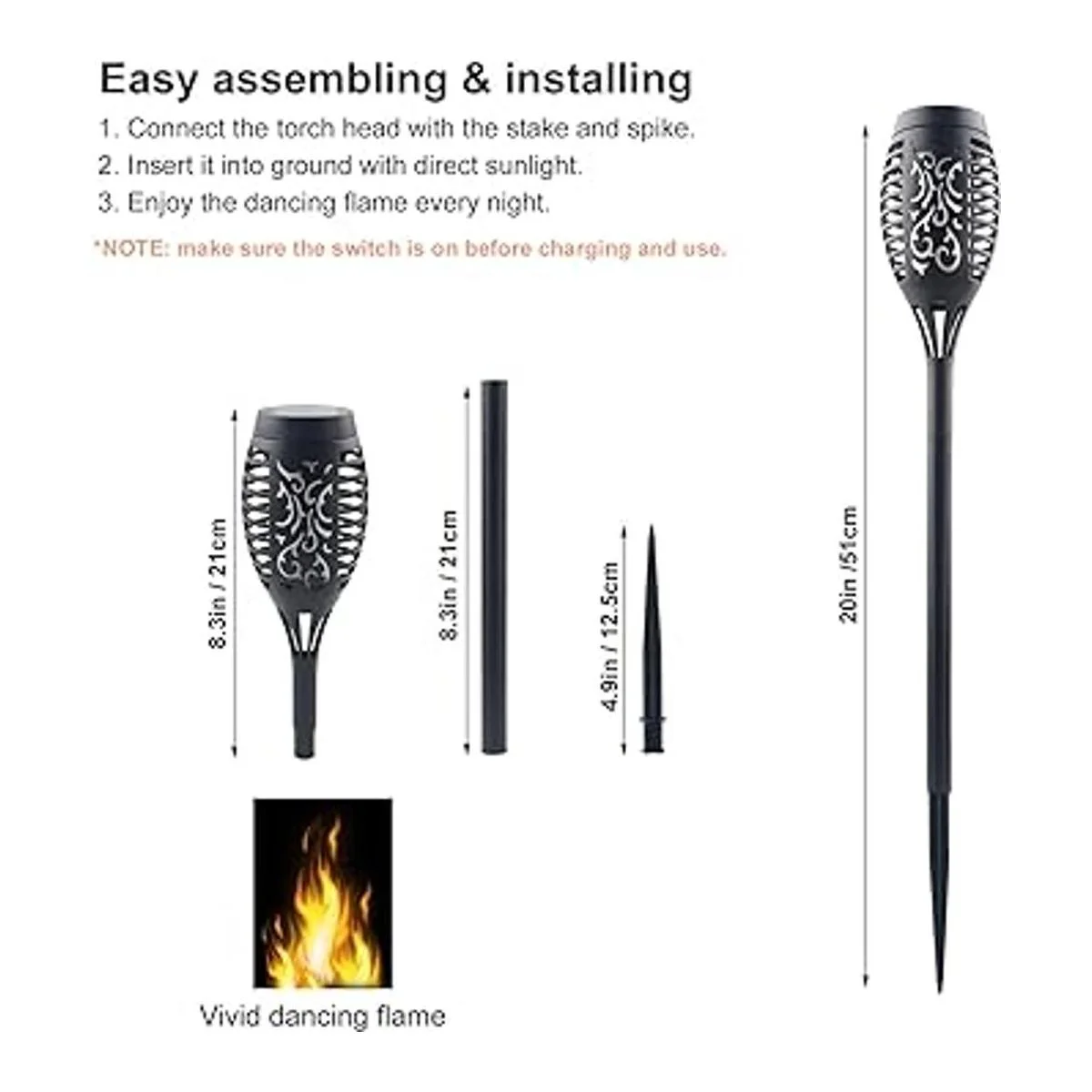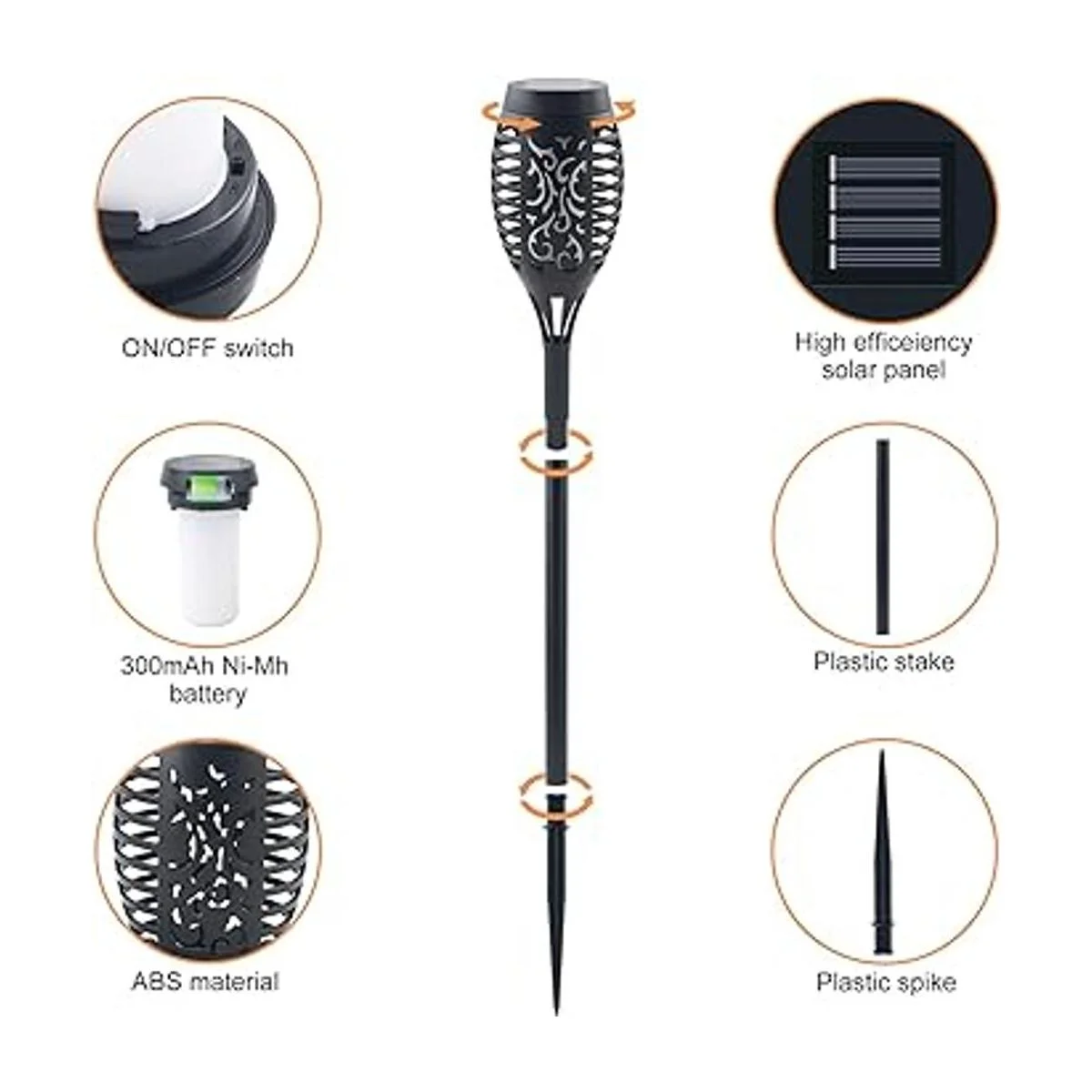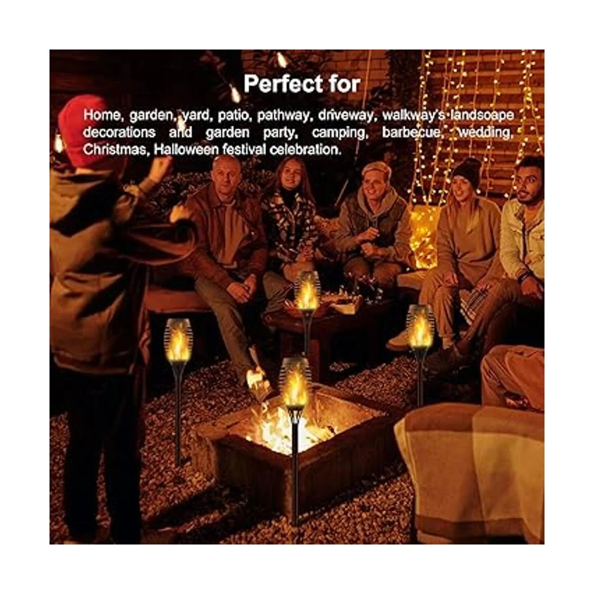Ampliamente utilizado: la linterna solar de llama para exteriores es perfecta para el hogar, jardín, patio, camino, decoración de paisaje y fiestas de jardín, camping, barbacoas, bodas, Navidad, Halloween y otros festivales para proporcionar el ambiente perfecto de fogata.