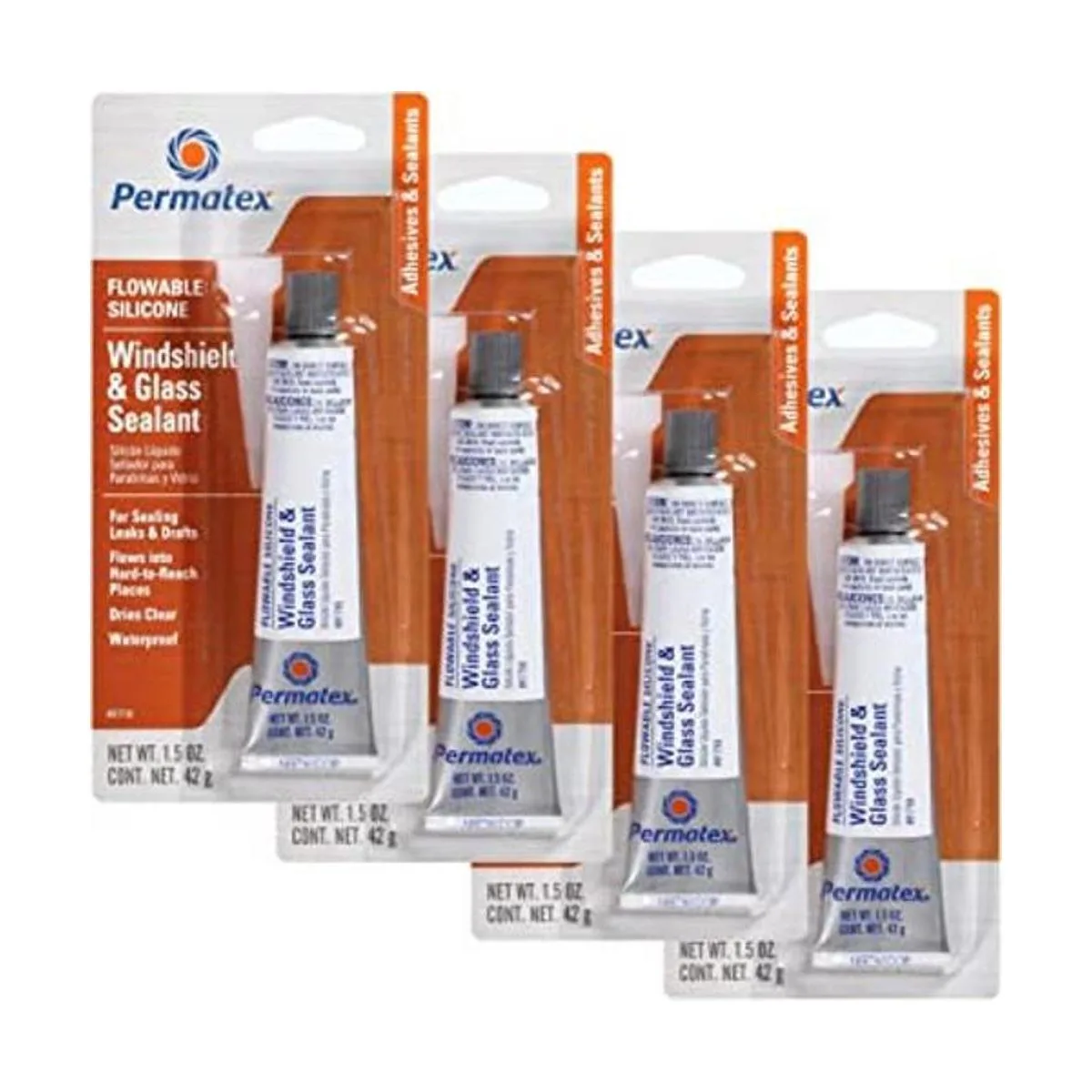 Permatex 81730 Sellador de parabrisas y vidrio de silicona fluida, 1.5 onzas, paquete de 4 unidades.