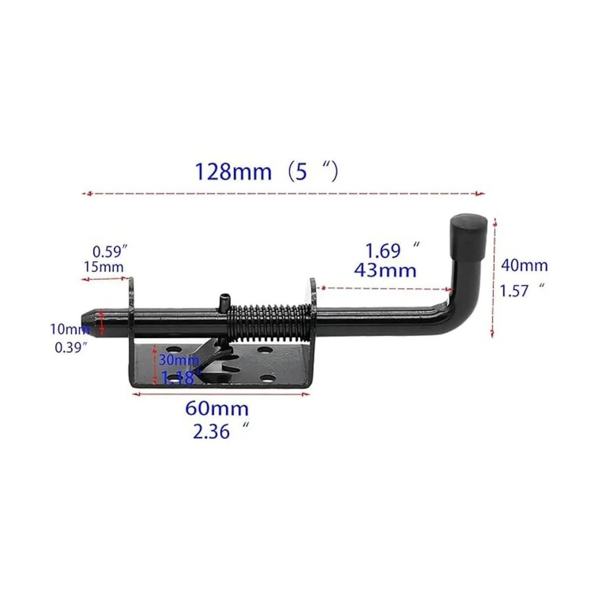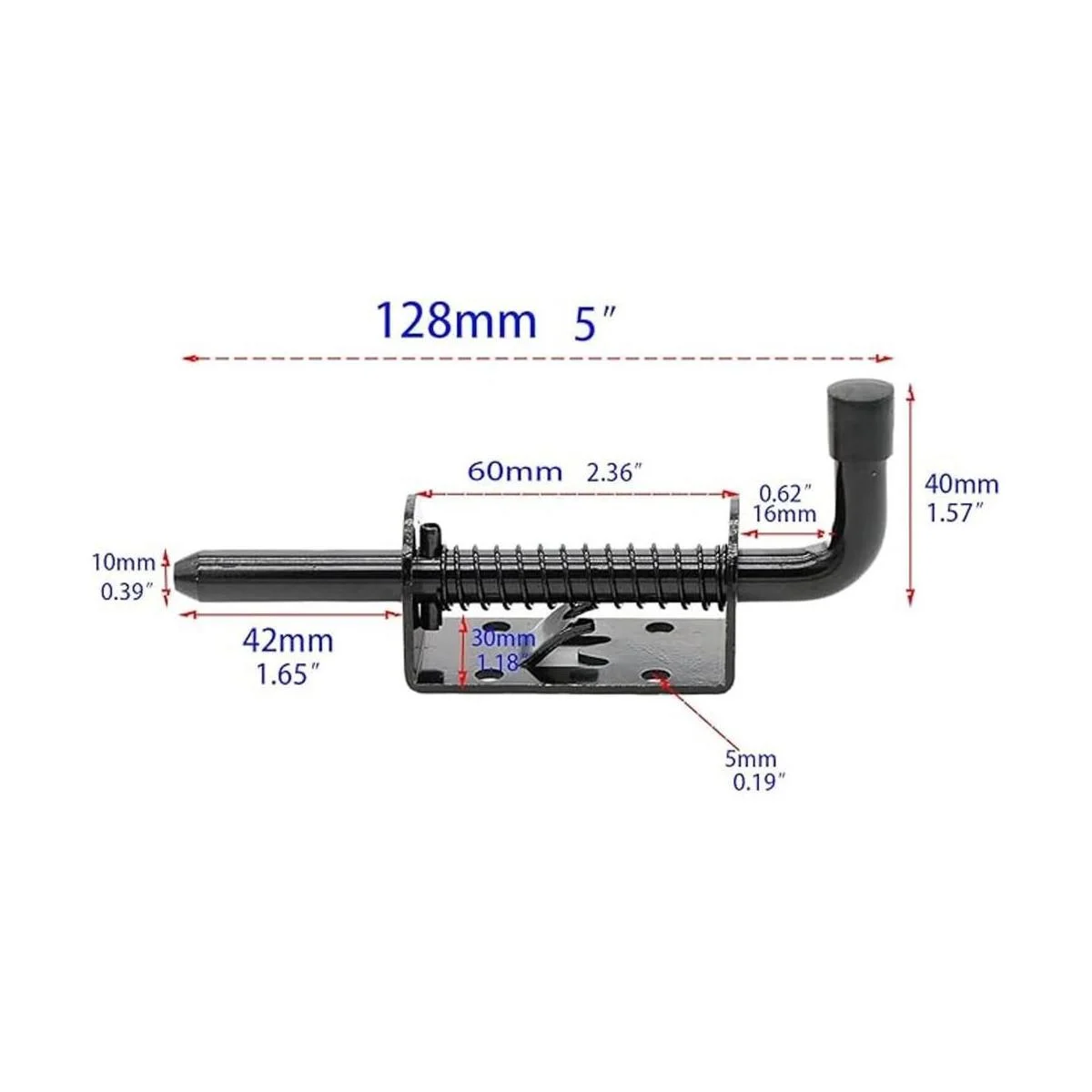 Perno de cierre con resorte de 5 pulgadas, cerradura de puerta de pasador con resorte resistente, cobertizo de pasadores de 12 pulgada 2, negro