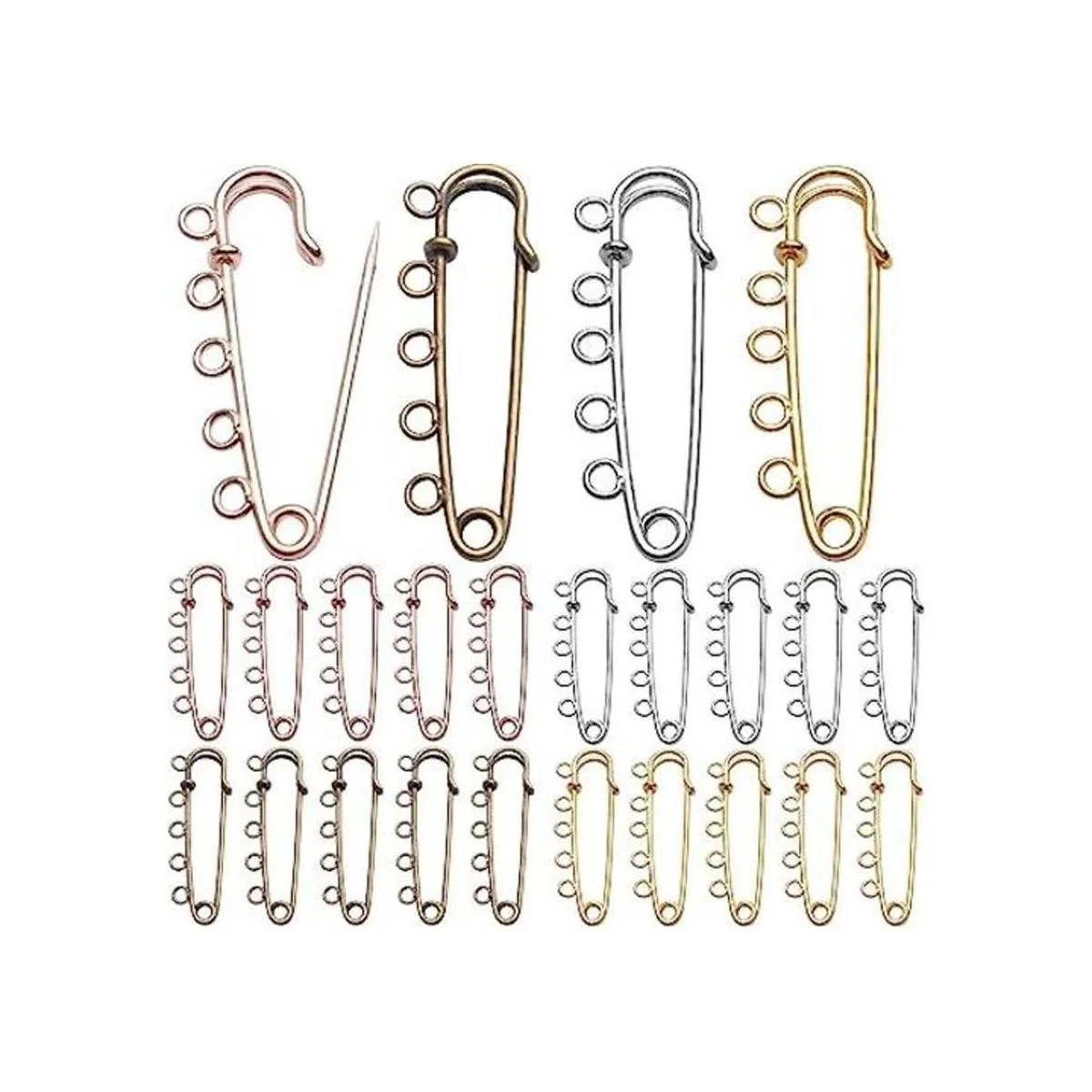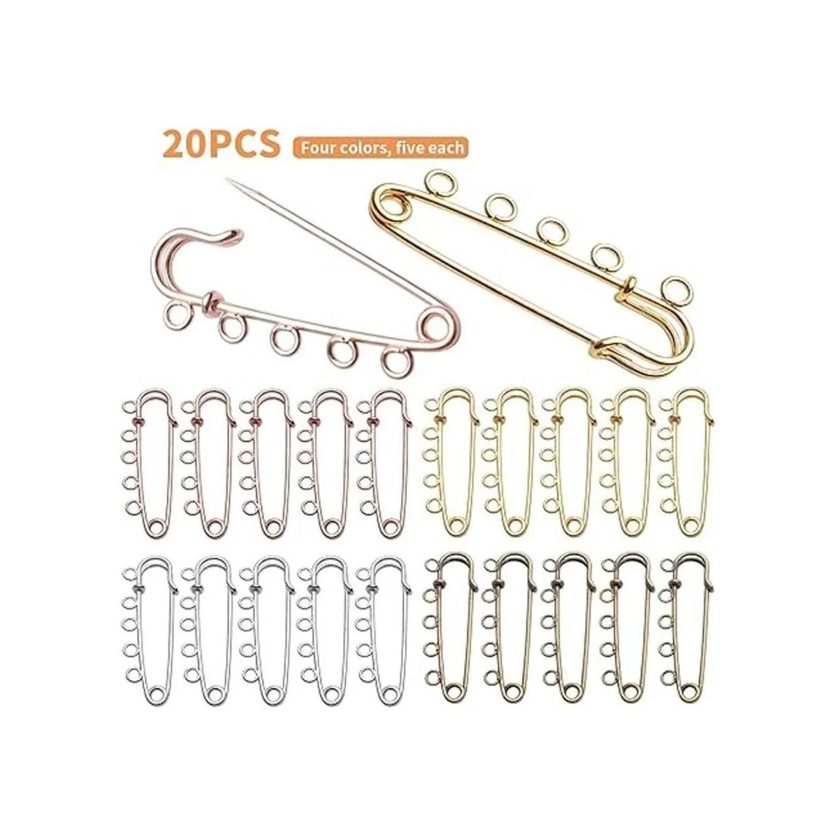 Lo que recibirás: el paquete incluye 20 imperdibles resistentes con 5 bucles en 4 colores, oro, plata, bronce antiguo, oro rosa, cada uno para 5 piezas, suficiente para satisfacer tus diferentes necesidades.