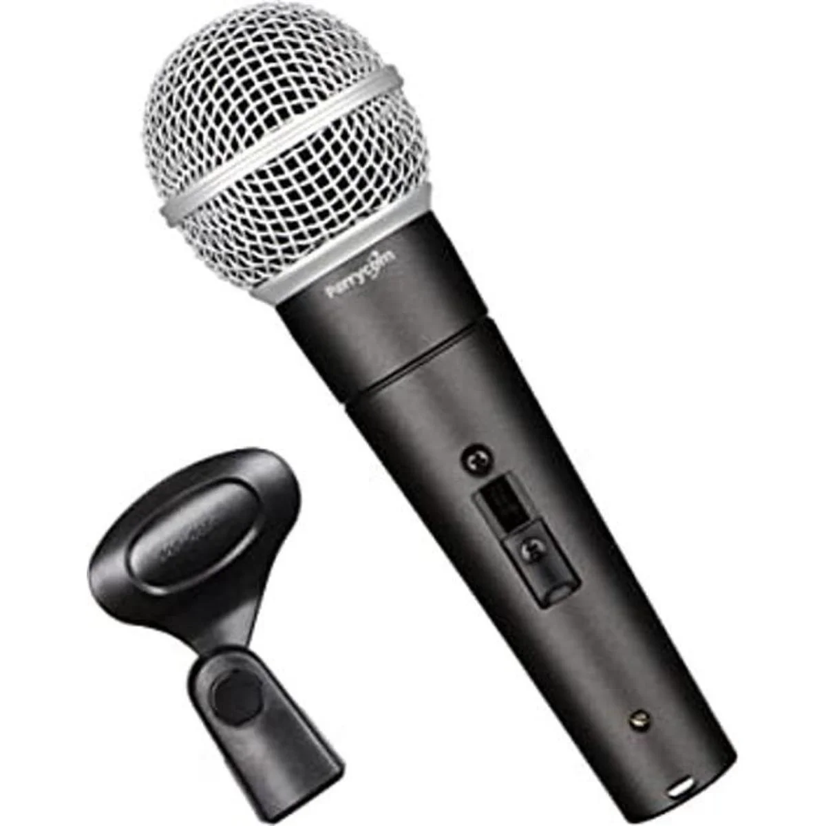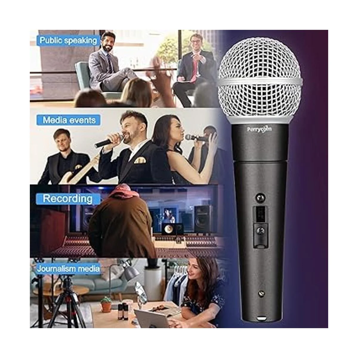 Perrycom Micrófono vocal dinámico profesional con interruptor de encendido y apagado, micrófono XLR de mano dinámico cardioide compatible con AMPaltavozmezclador para cantar, clip de micrófono negro, conector XLR pegado dorado TM58S
