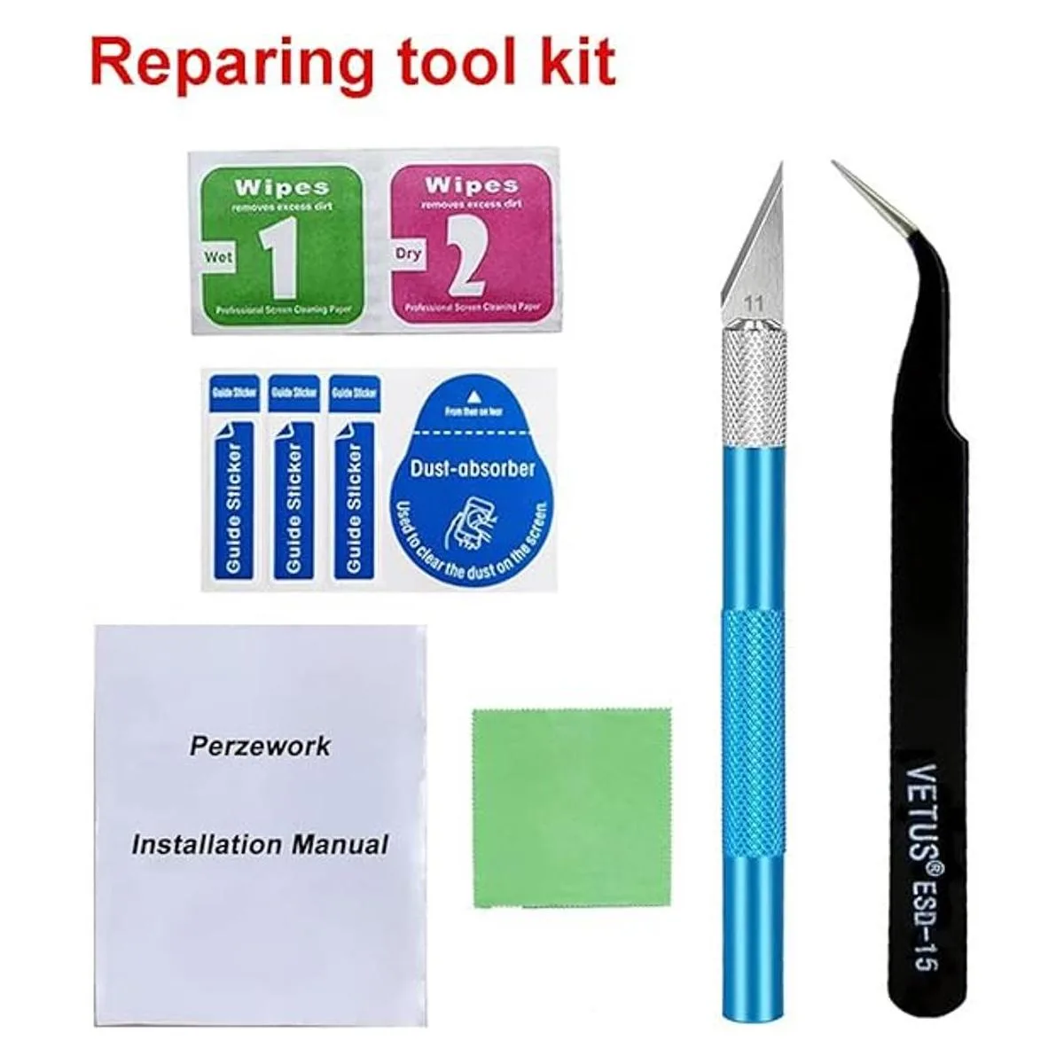 Incluye kit de herramientas que necesitas: incluye un kit de herramientas de reparación profesional que hace que tu reparación sea mucho más fácil, sin necesidad de abrir tu teléfono. Fuerte adhesivo preinstalado que se sujeta firmemente.