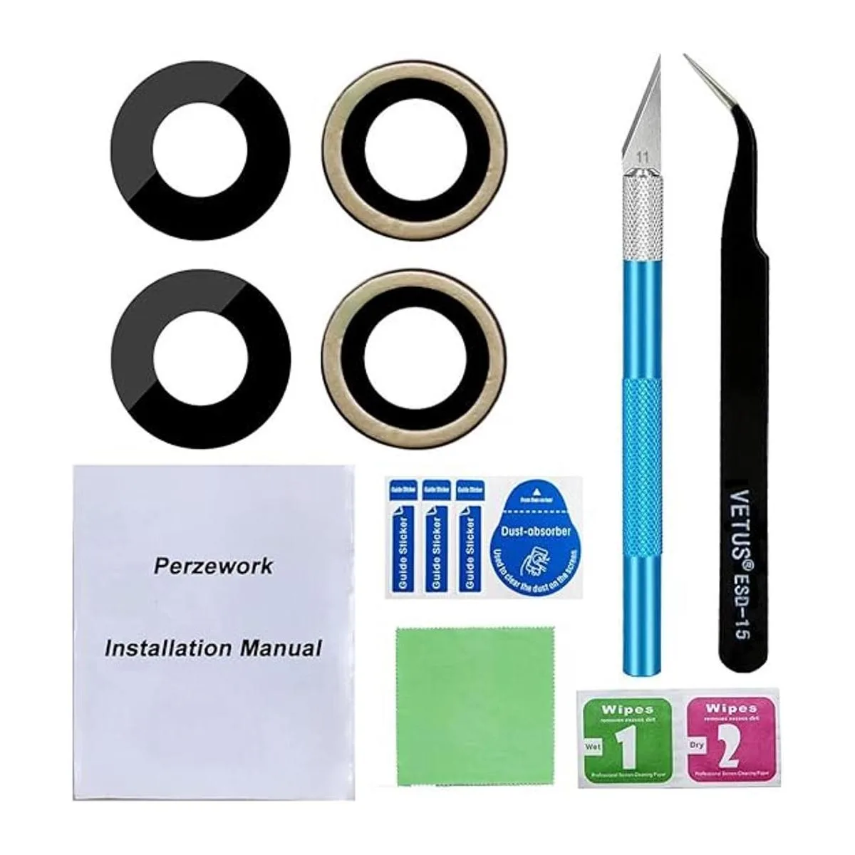 Perzework 2 piezas de repuesto de vidrio para lente de cámara trasera para iPhone XR de 6.1 pulgadas con adhesivo preinstalado y kit de herramientas de reparación