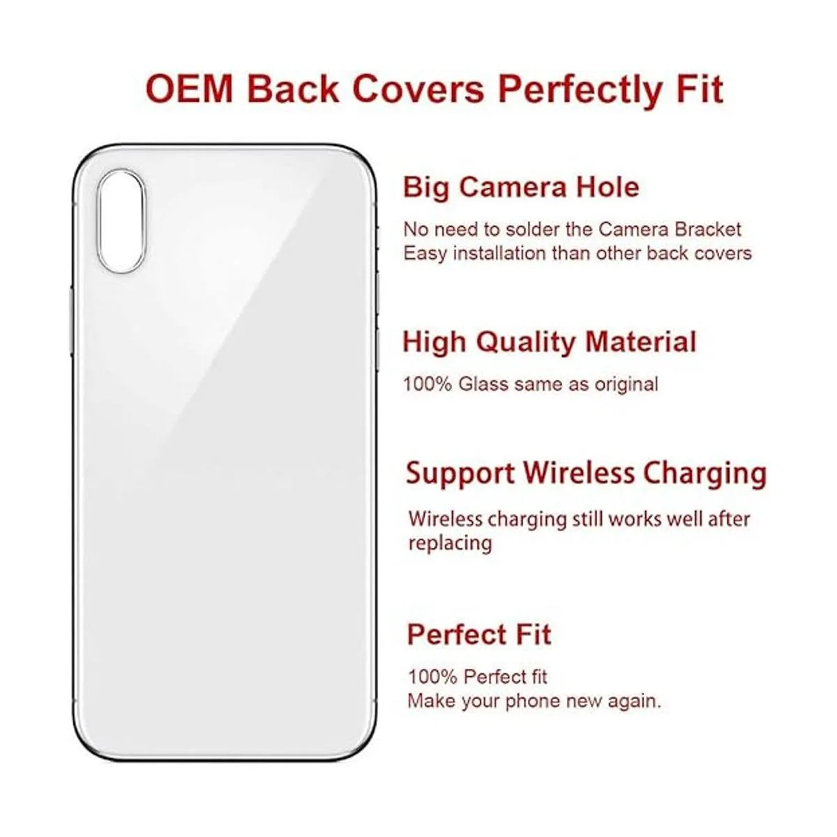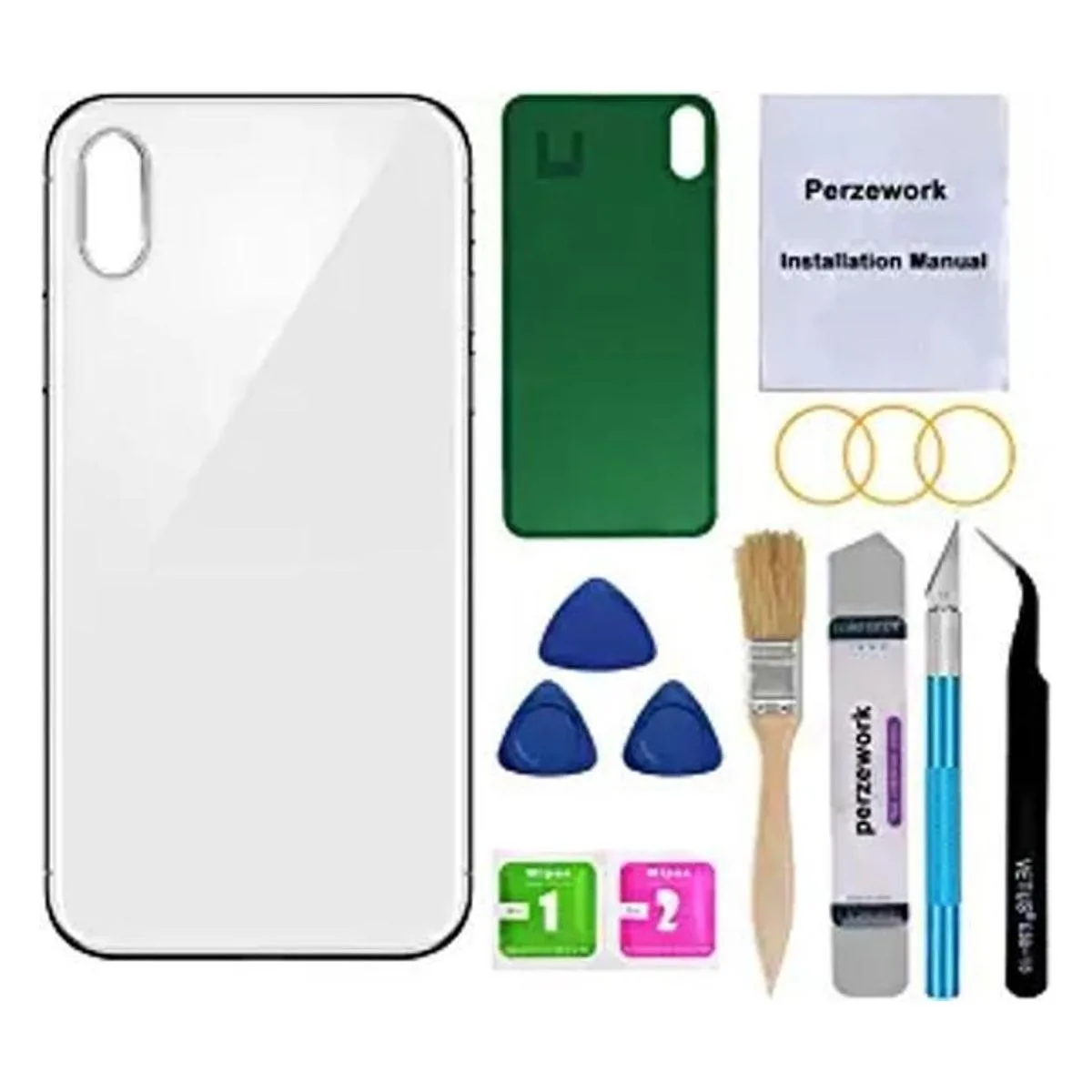 Perzework Reemplazo de vidrio trasero OEM para iPhone X de 5.8 pulgadas con kit de herramientas de reparación y adhesivo preinstalado plata