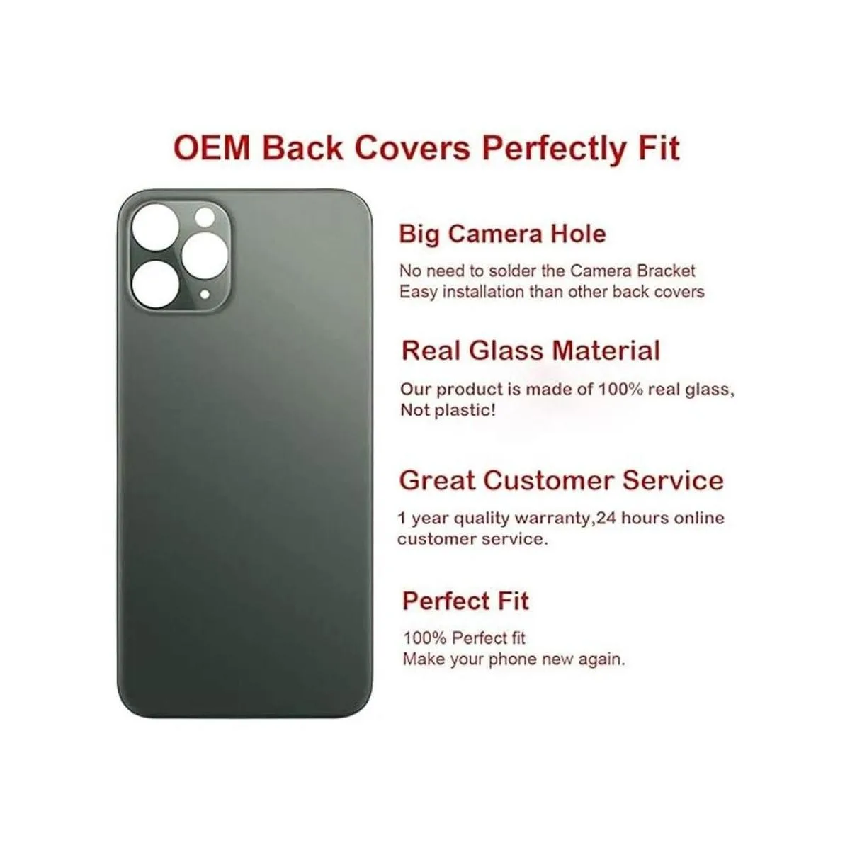 Agujero de cámara más grande: no hay necesidad de quitar la lente de la cámara, ya que el nuevo cristal trasero tiene un agujero de cámara más grande. Puedes instalar el nuevo reemplazo de cristal trasero directamente después de quitar el viejo vidrio roto. Es mucho más fácil para ti.