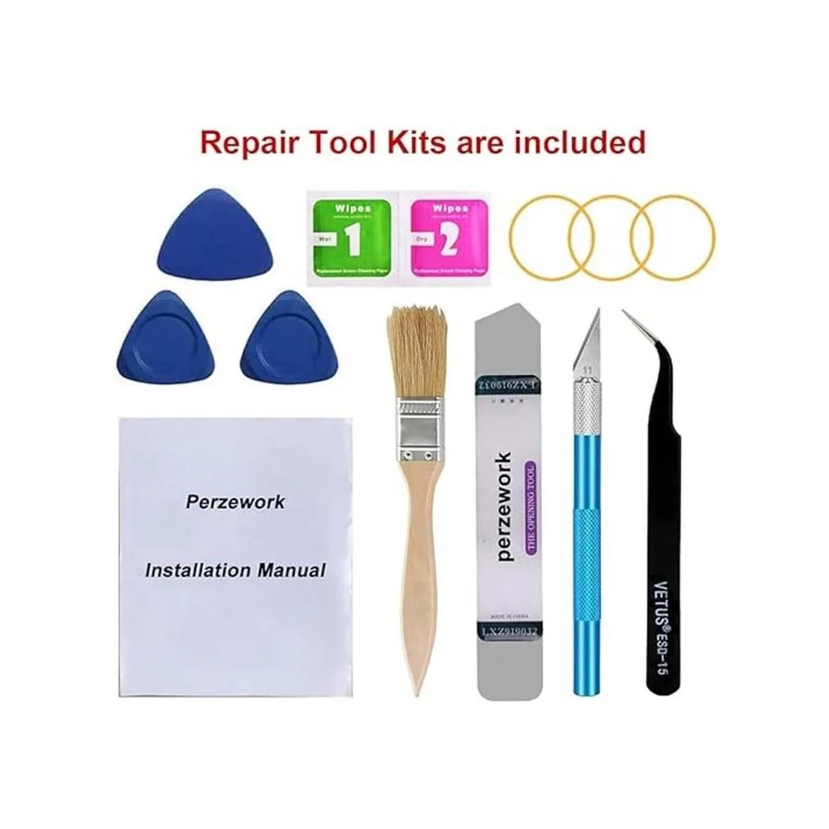 Viene con kit de herramientas completo: viene con un juego completo de herramientas de reparación profesional. Es mucho más fácil quitar el cristal trasero roto. Ten en cuenta que necesitas preparar un secador de pelo, porque el adhesivo original es muy fuerte.