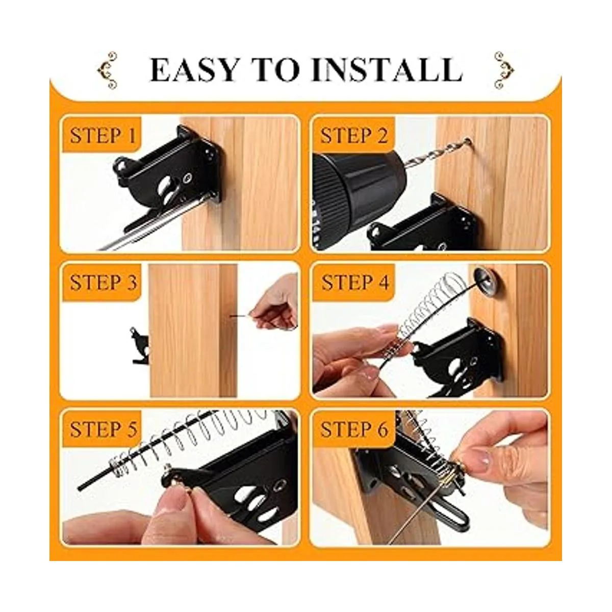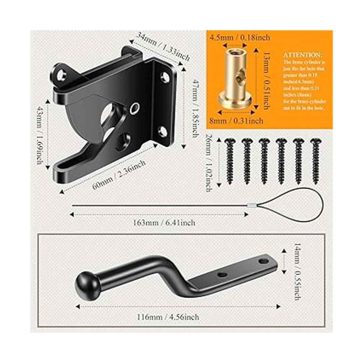 Buena calidad: el kit viene con todas las piezas y accesorios, incluyendo tornillos, cables y anillos de tracción; el pestillo de puerta de jardín de privacidad está hecho de acero al carbono, resistente y fiable, de alta dureza y fuerte estabilidad
