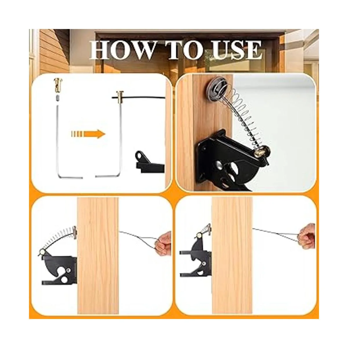 Amplio uso: nuestro pestillo de bloqueo automático se puede aplicar ampliamente a puertas de madera, vallas de madera, puertas de vinilo, puertas de aleación de aluminio y así sucesivamente, adecuado para muchos lugares, como jardín, huerto, patio, cubierta, cobertizo, pasto, puertas y más
