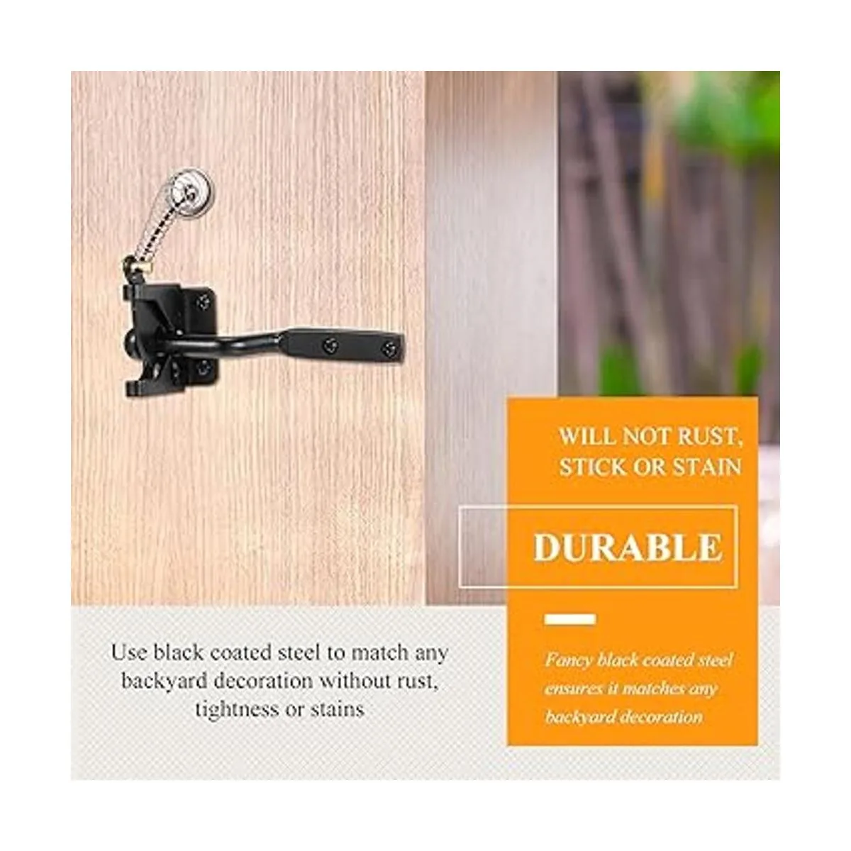 Multiusos: la cerradura de puerta de valla es adecuada para puertas de madera o metal que se balancean dentro y fuera; además, con acero recubierto de color negro, no se oxida, no se mancha, por lo que se puede utilizar con confianza