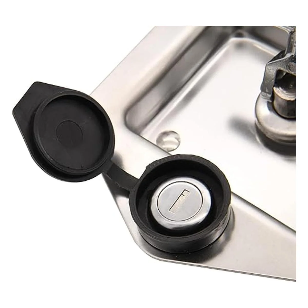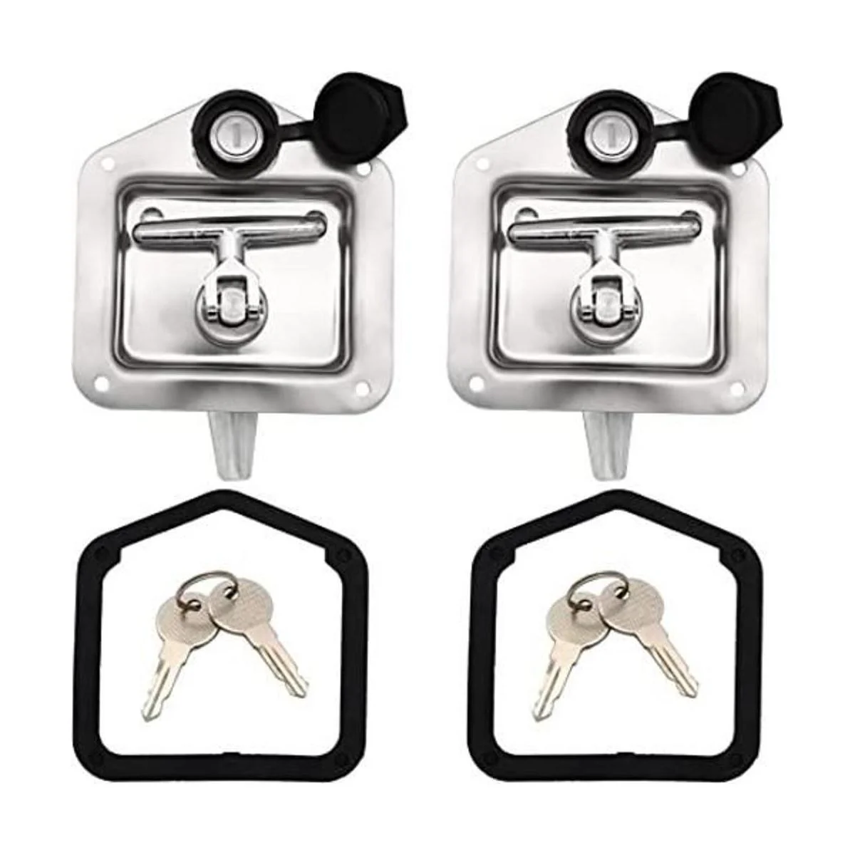 Cierre de puerta de repuesto para manija en T: el paquete de 2 pestillos de acero inoxidable con mango en T incluye 2 cerraduras de caja de herramientas, 2 juntas para un sellado seguro e impermeable y 4 llaves que tienen llave igual en E45. Excelente ajuste y reemplazo para pestillo de caja roto.