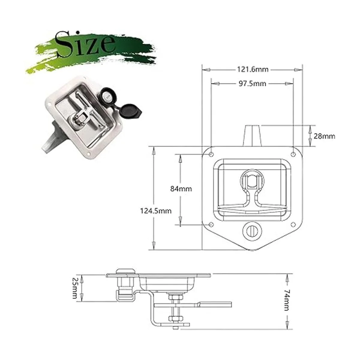 Duradero: este pestillo de puerta de remolque de acero inoxidable está hecho de acero de alta calidad y acero inoxidable. hecho para manejar las condiciones más duras. El pestillo de la caja de herramientas se bloquea dentro de la superficie de la lengeta ajustable.