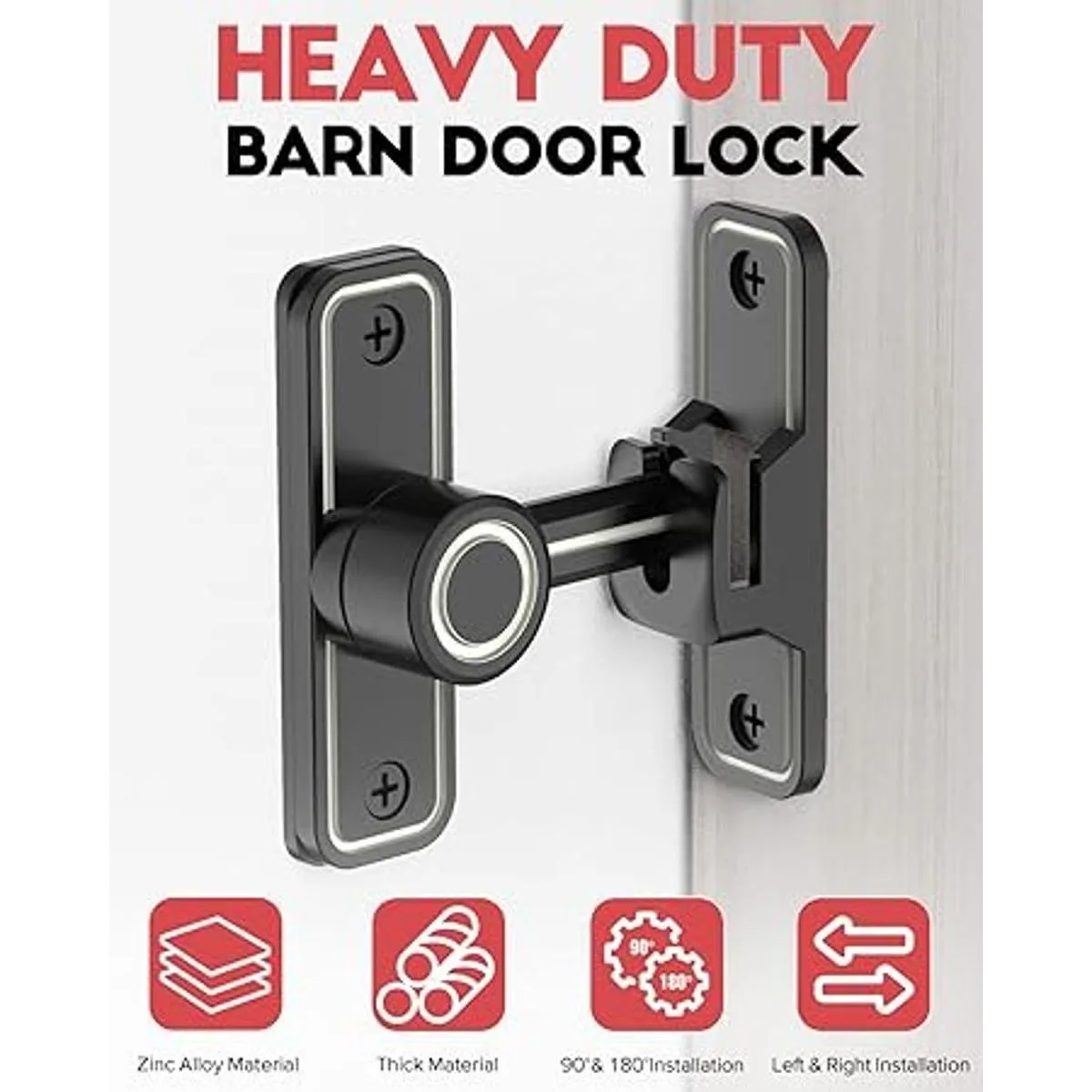 Pestillos de puerta resistentes de 90 grados en ángulo recto para puerta de granero, cierre antirrobo para puerta corrediza para valla de madera, jardín, baño, ventana de garaje al aire libre incluye tornillo negro luminoso