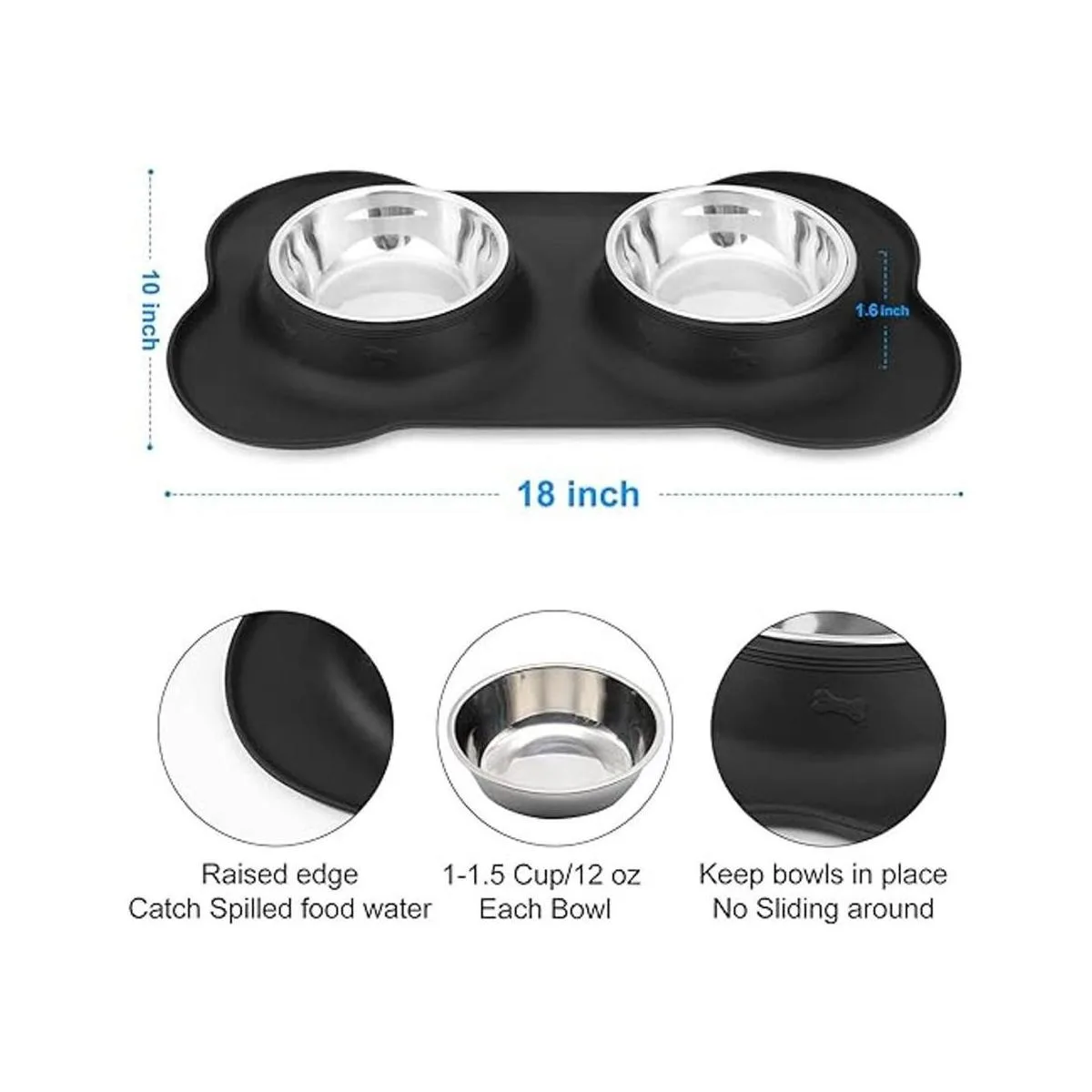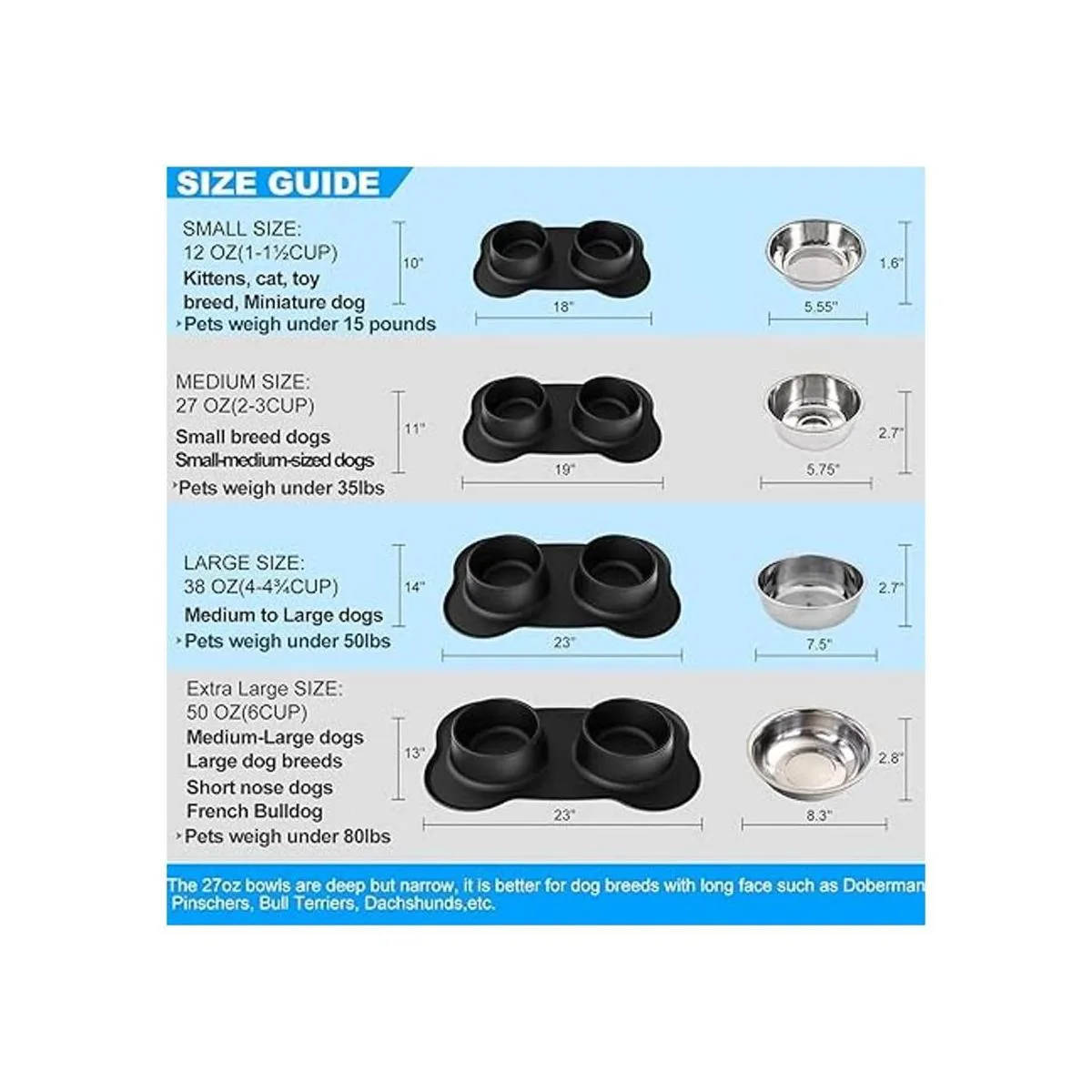 Pet Deluxe Cuencos para perros de acero inoxidable con alfombrilla de silicona antideslizante y antideslizante, 2454 onzas, cuencos dobles para perros pequeños, medianos y grandes, platos para cachorros y perros