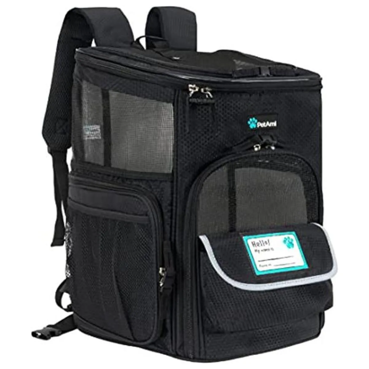PetAmi Mochila para perros y gatos pequeños Aprobado por aerolínea Entrada ventilada de 4 vías, seguridad y soporte suave de espalda Plegable para viajes, senderismo, al aire libre