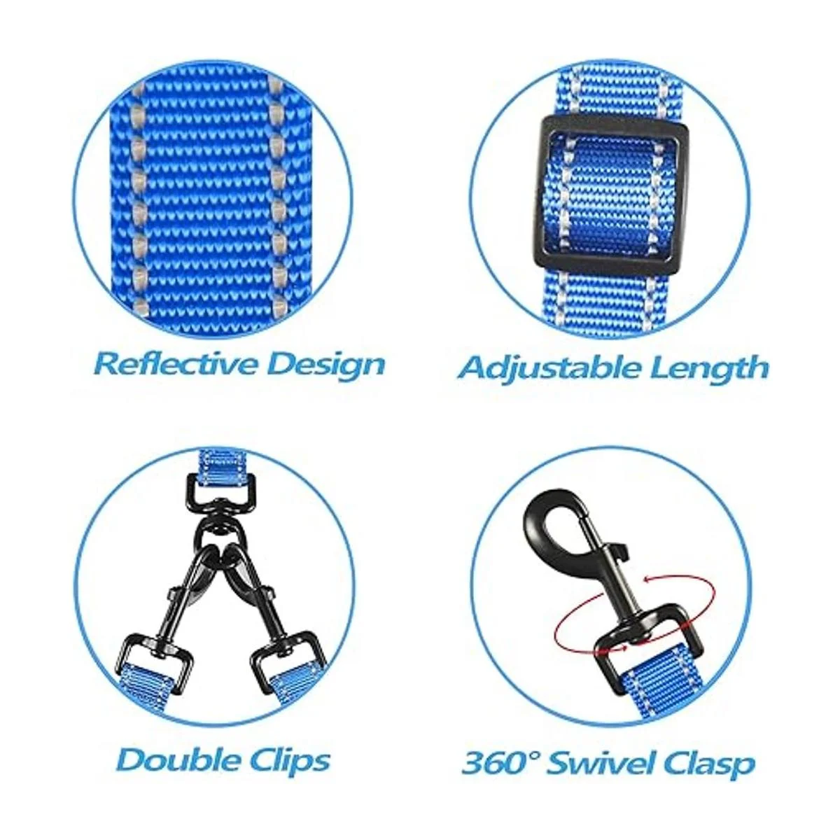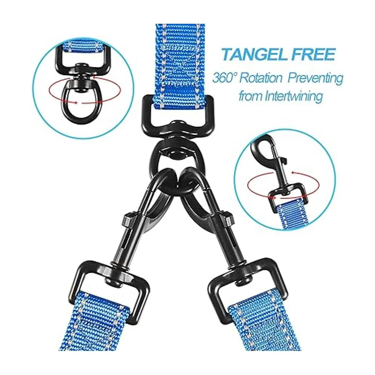 Correa doble para perro sin enredos: los cierres giratorios de 360 ayudan a evitar que tus perros se enreden. No hay necesidad de preocuparse por torcer dos correas de perro cuando los perros cambian de lado.
