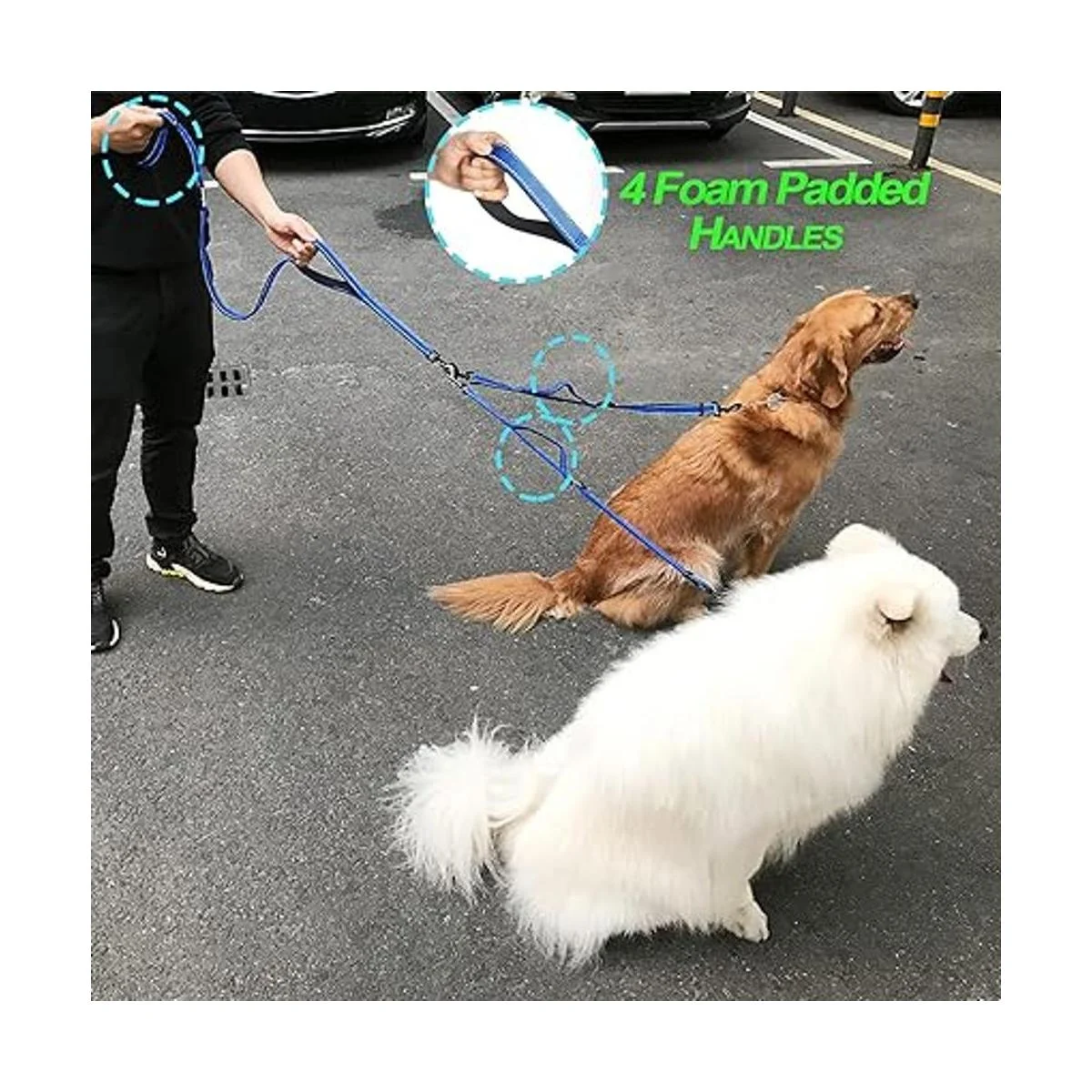 4 cómodas asas acolchadas: no más manos quemadas con 4 asas acolchadas suaves, que aportan la máxima comodidad y te permiten liberar una mano mientras usas esta correa dividida para pasear a 2 perros.