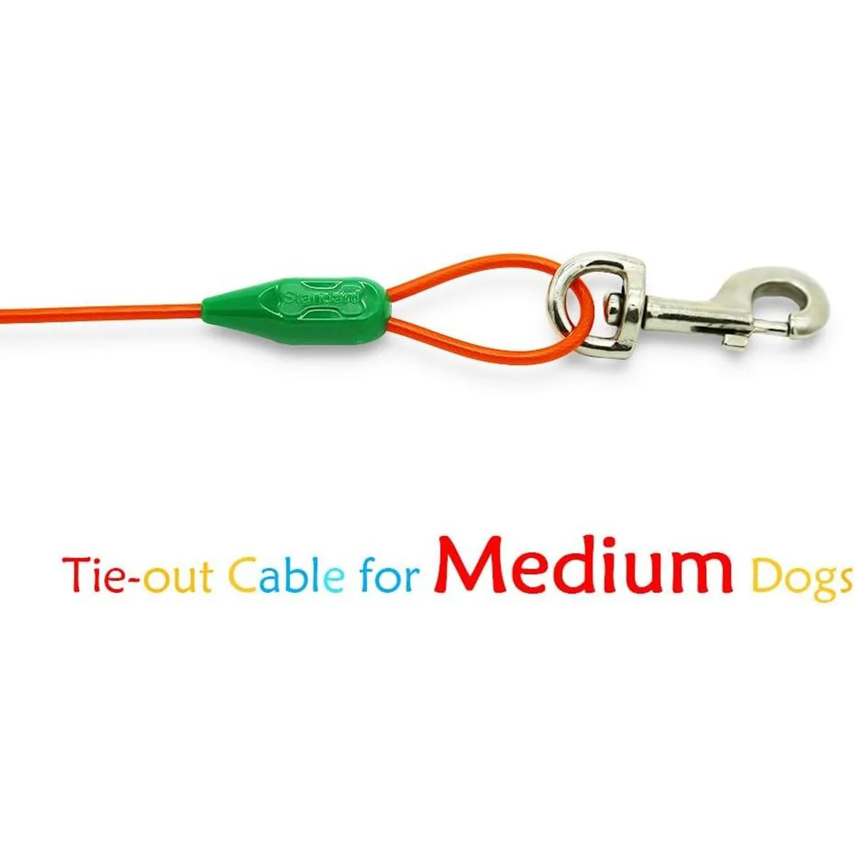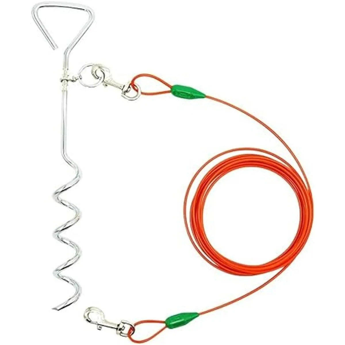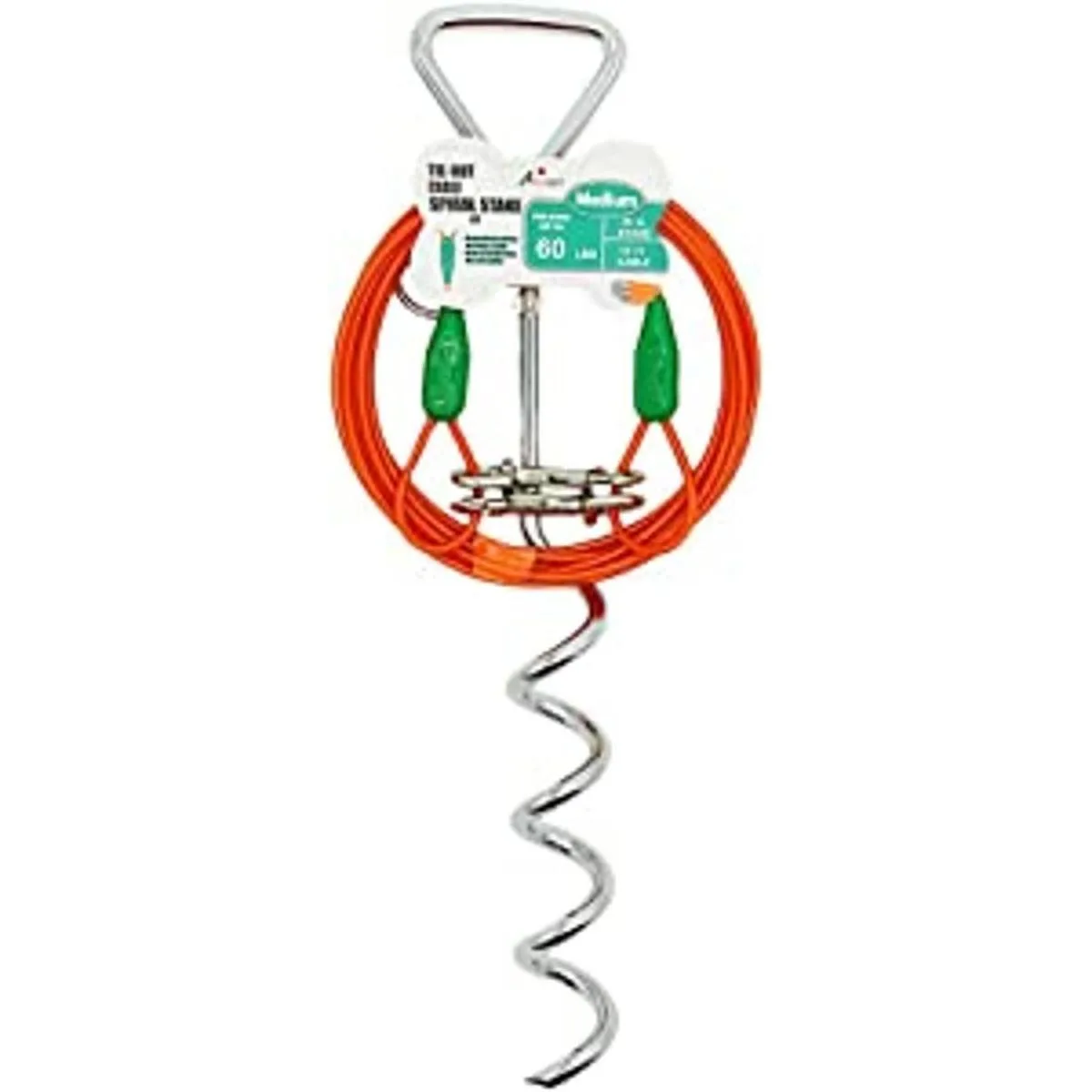 Estaca en espiral de 16 pulgadas y un cable estándar de 15 pies para perros de hasta 60 libras.