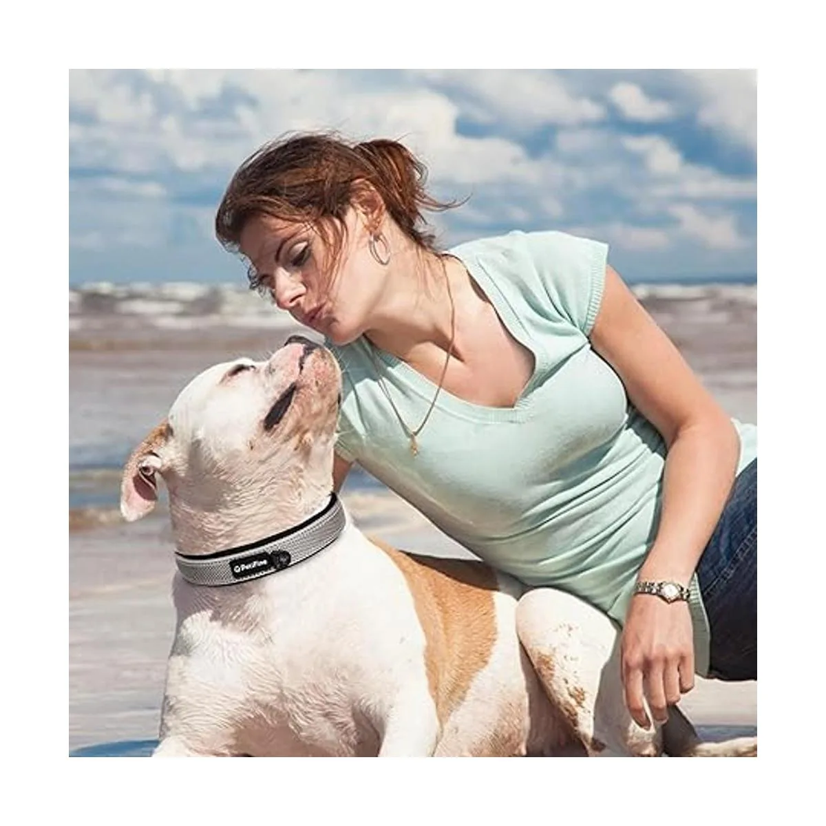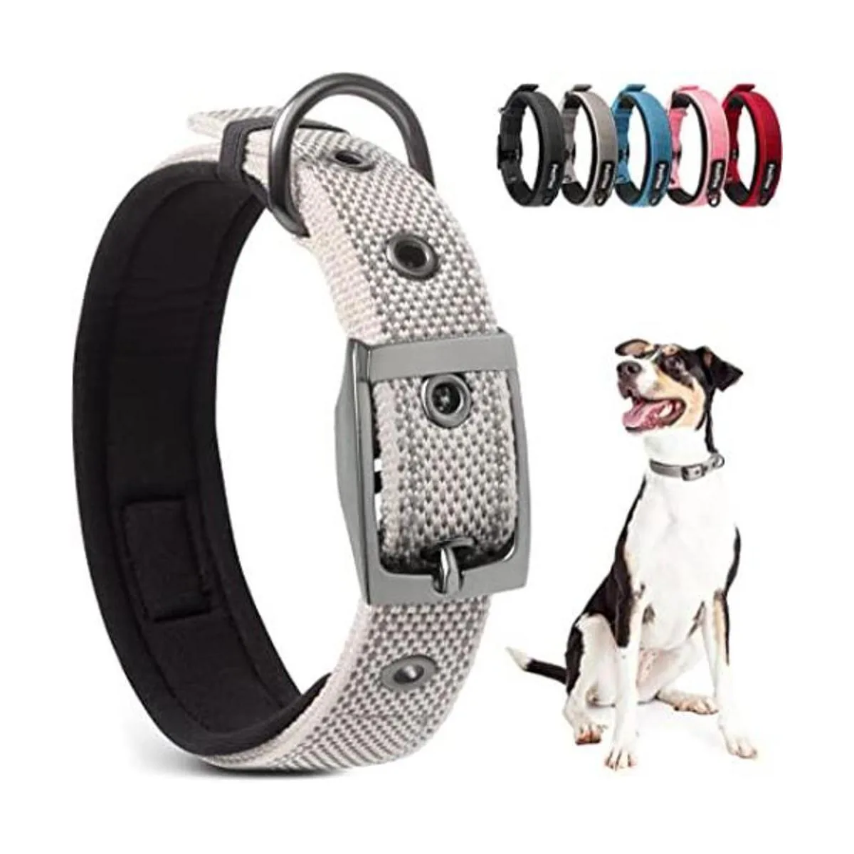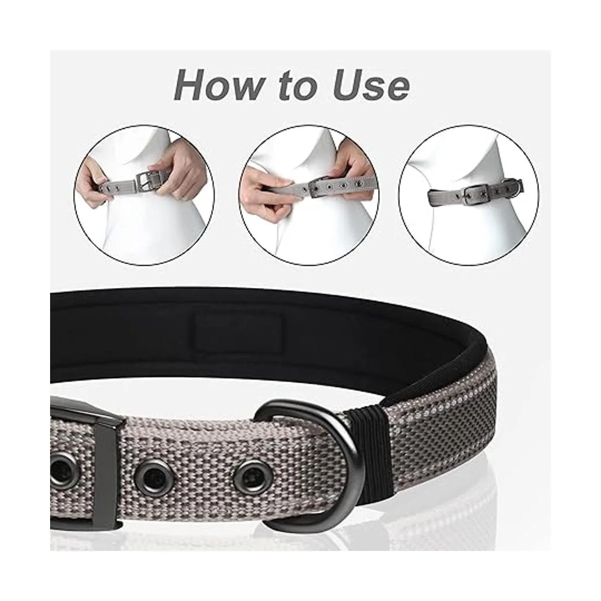 PetiFine Collar de perro resistente, ajustable de neopreno suave acolchado con hebilla de metal, collares reflectantes con hebilla de cinturón para perros pequeños, medianos y grandes 14.519 pulgadas, gris