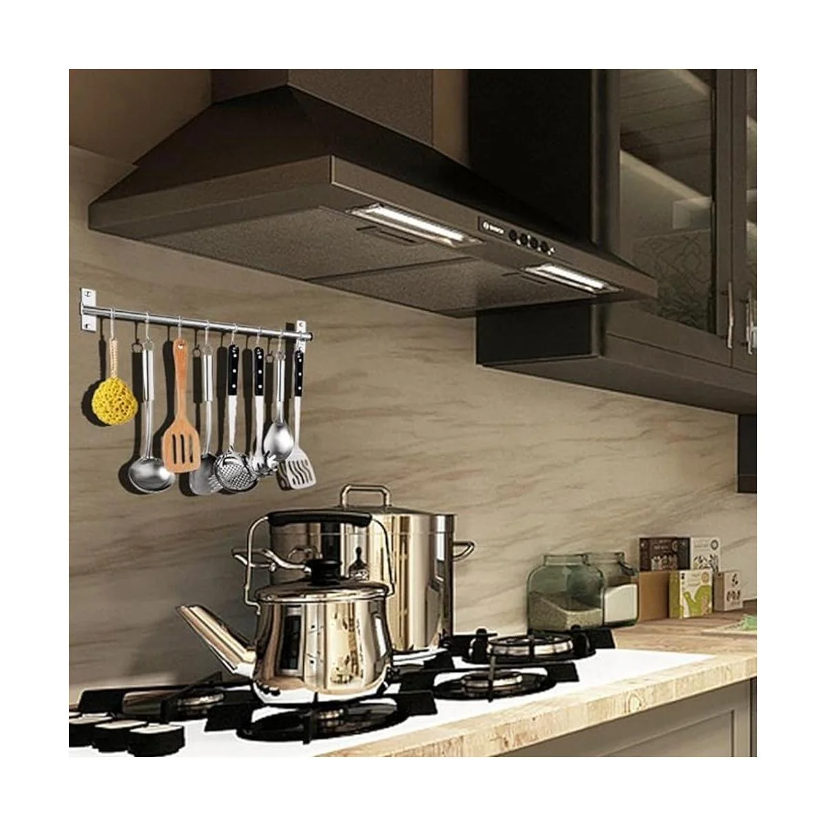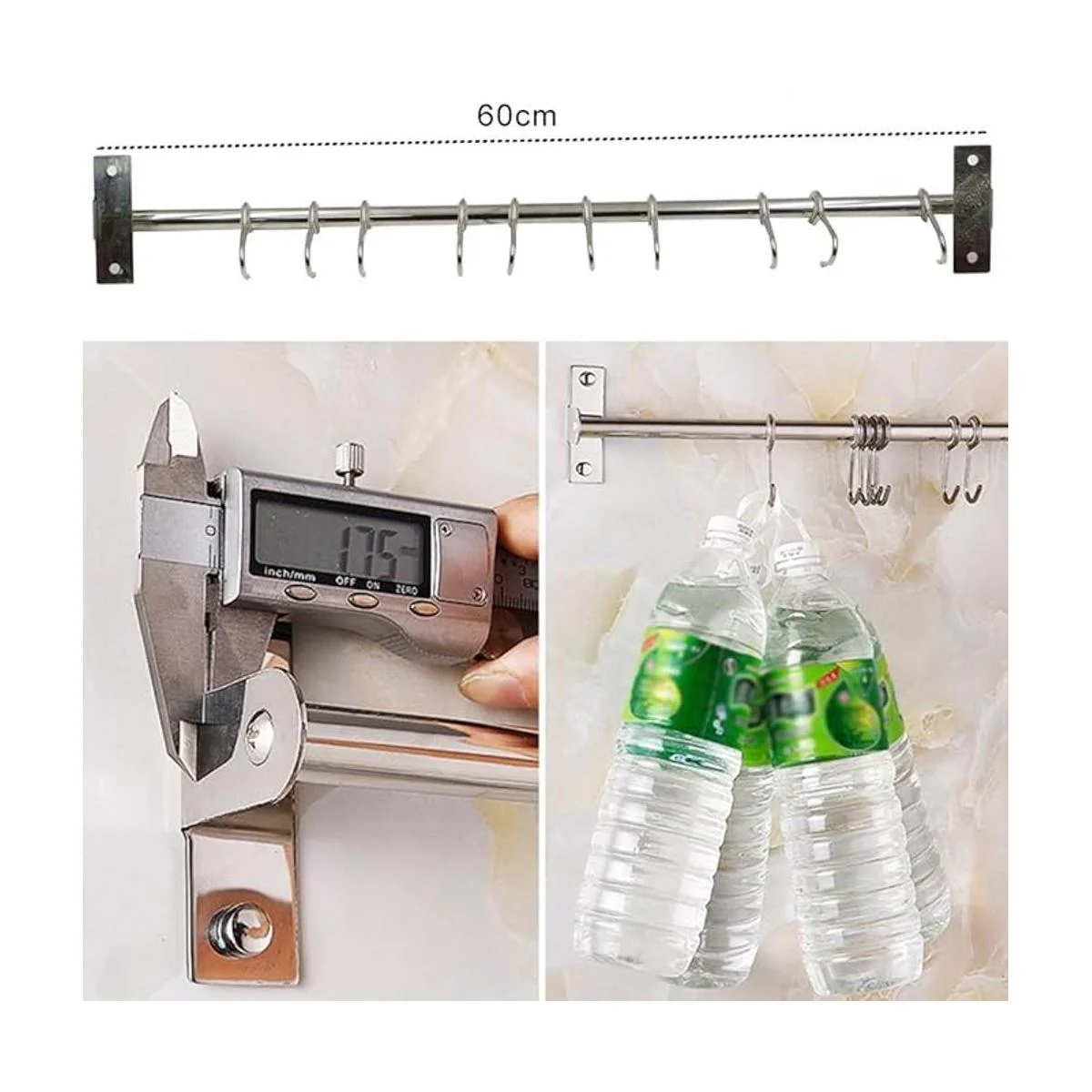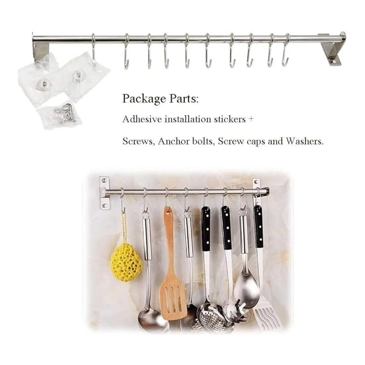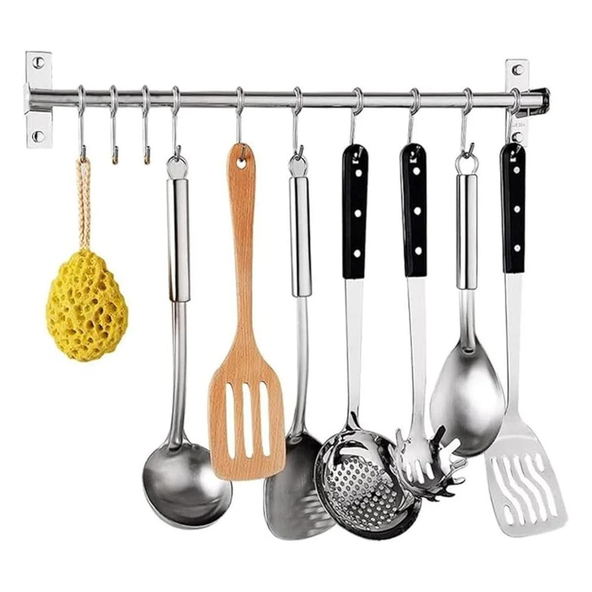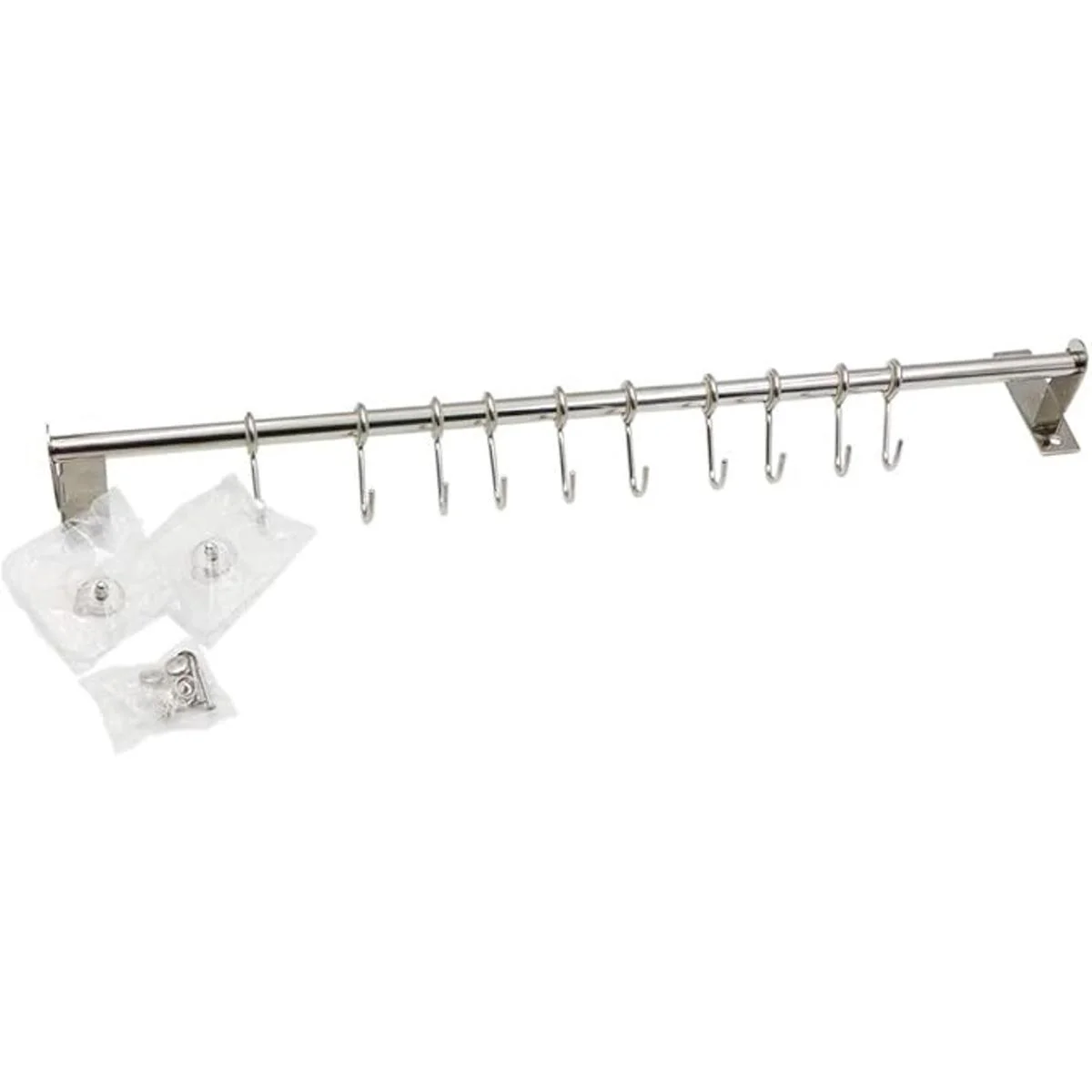 Petilleur Ganchos deslizantes de cocina, riel de acero inoxidable para colgar y organizar herramientas de cocina con 10 utensilios, ganchos extraíbles en S para toallas, cucharas, abrigos, albornoz, barbacoa, colgador de pared 10 ganchos