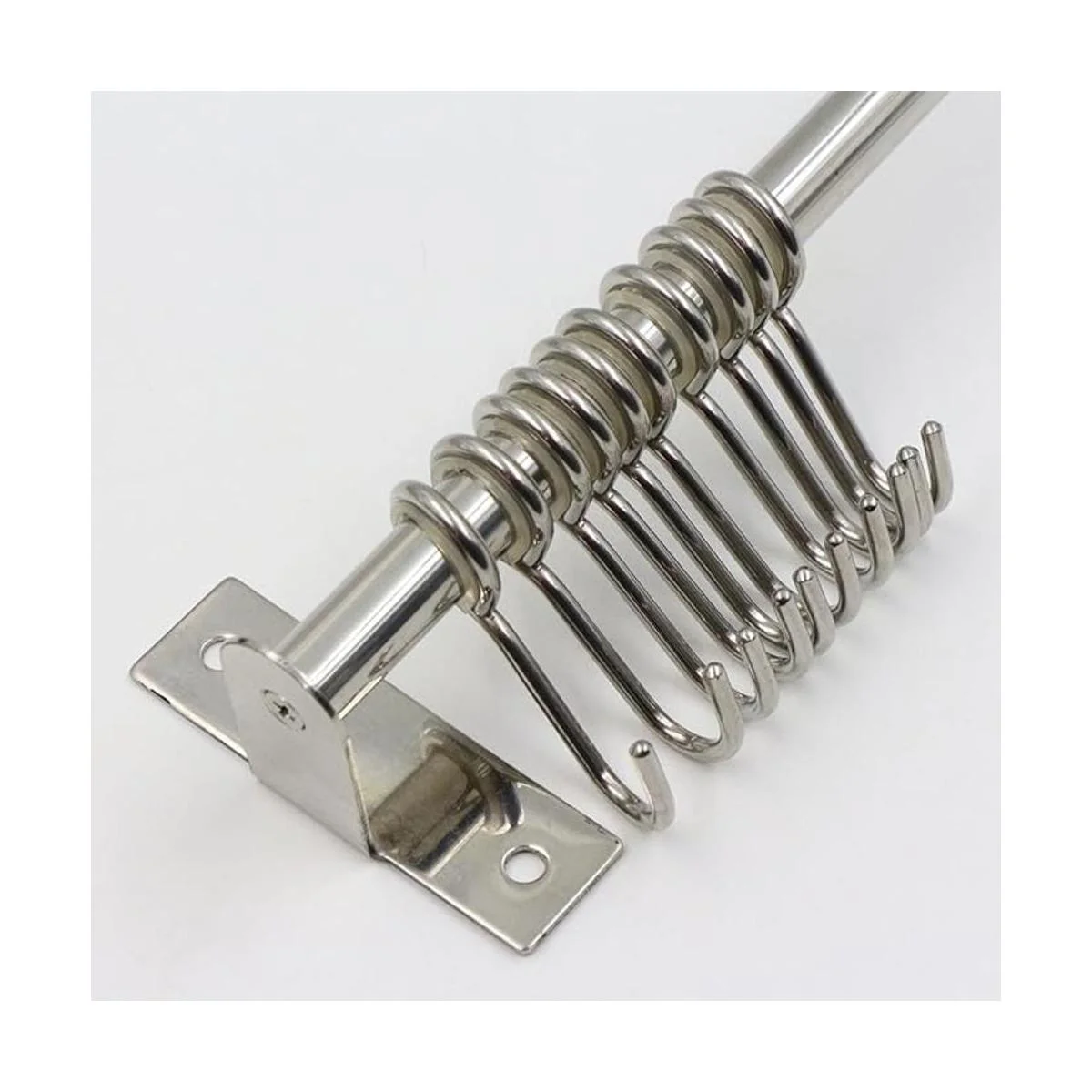 Construcción sólida: los 10 ganchos deslizantes de cocina están fabricados con material de acero inoxidable 304 de alta calidad. El estante S no se engancha a la tela o el material, por lo que los 10 ganchos se pueden mover suavemente, muy adecuado para la cocina doméstica y el lavadero.