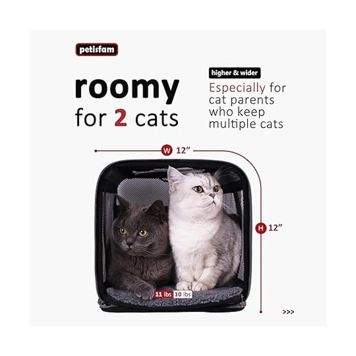 Amplio para que un gato grande gire. También es cómodo para gatos medianos, 2 gatitos o cachorros. Realmente deseamos que este portador petisfam sea cómodo para tu amigo peludo. Elige el transportador según las medidas de tu mascota. 12.0 x 12.0 x 17.0 in