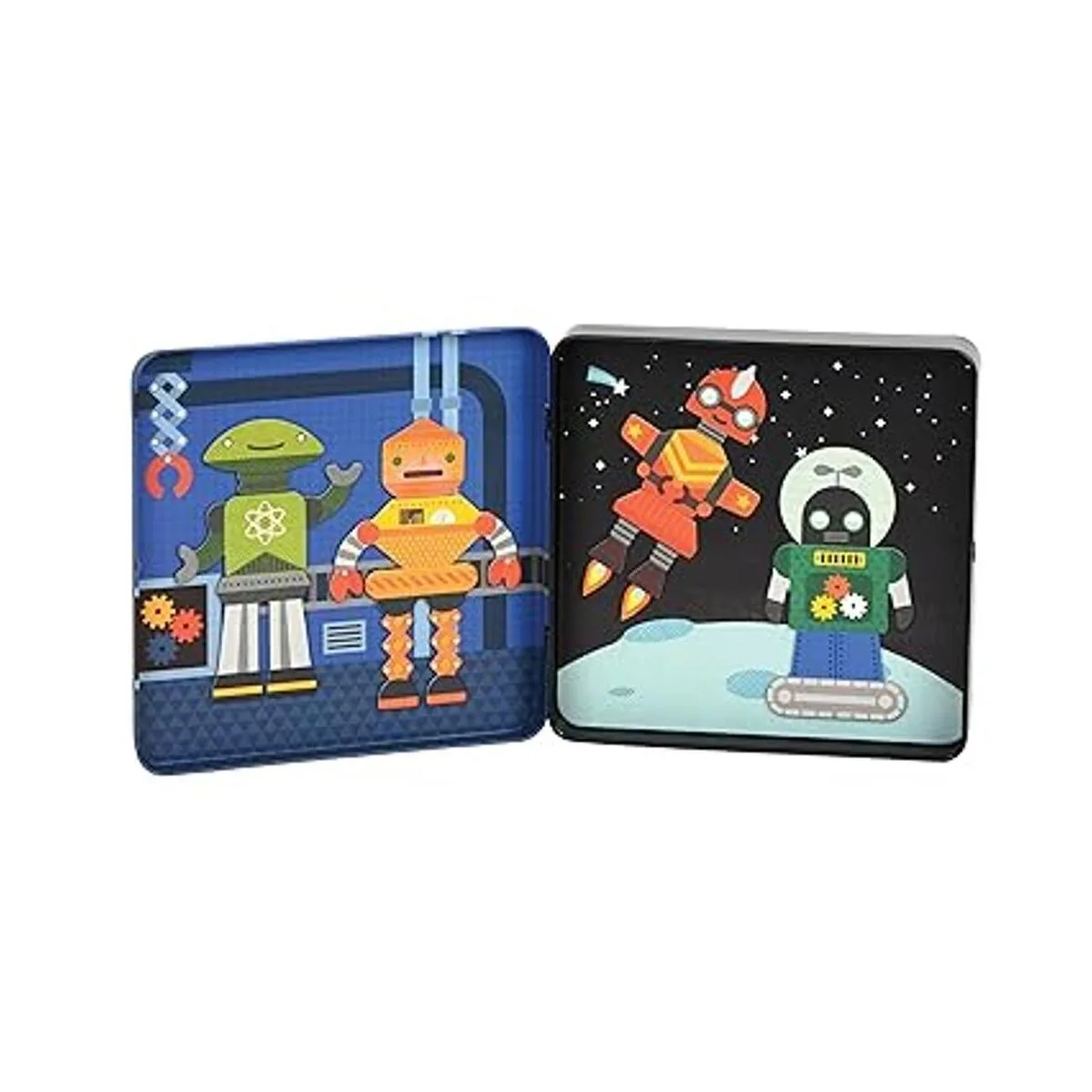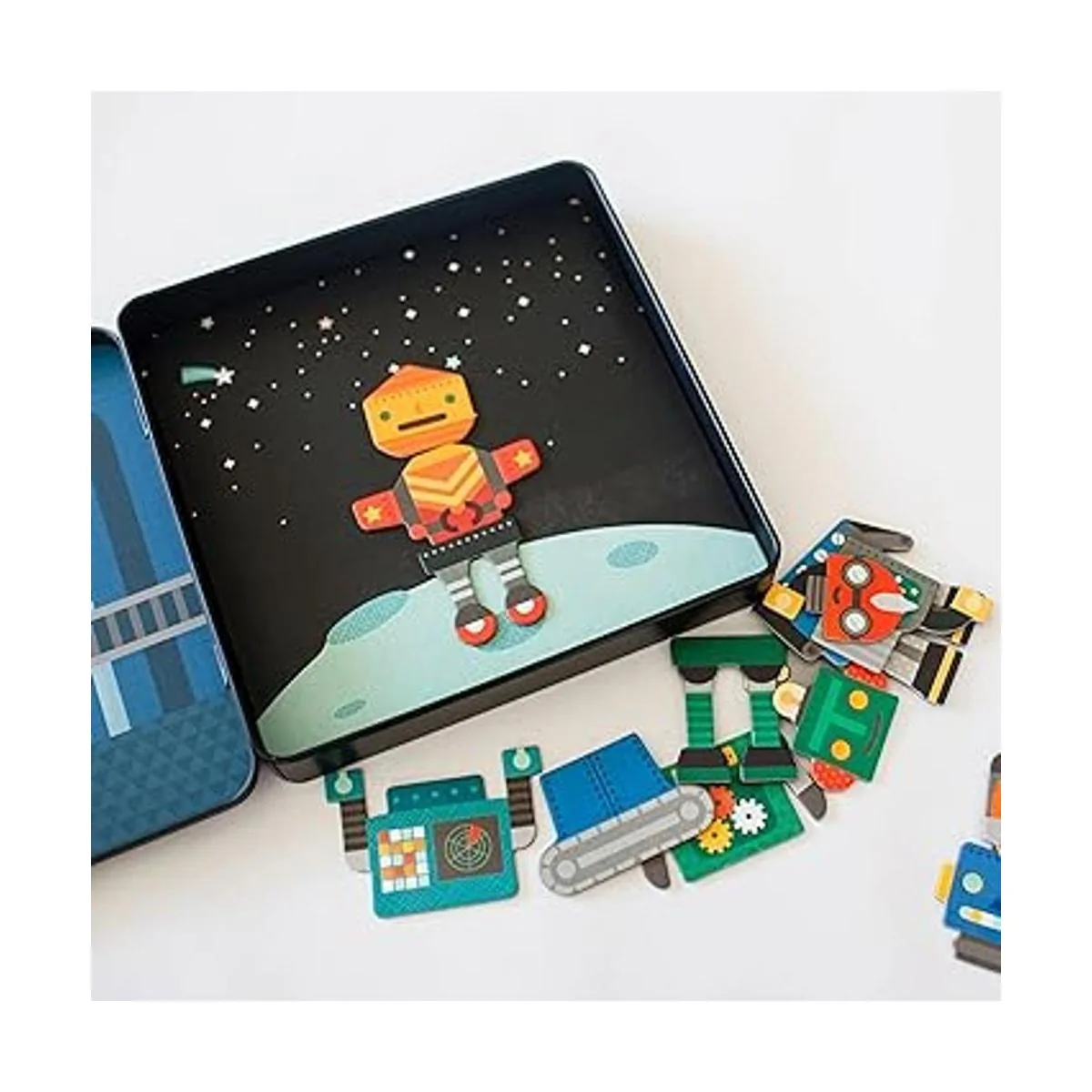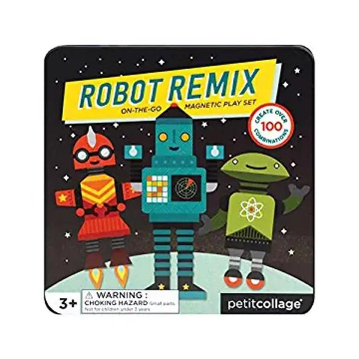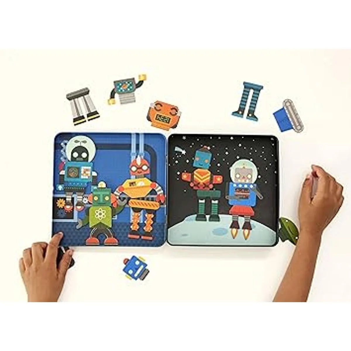 Petit Collage Juego magnético, Robot Remix Mix Match Tabla de juego magnética, ideal para mayores de 3 años, incluye 2 escenas magnéticas y más de 25 piezas magnéticas, actividad de viaje ideal para niños