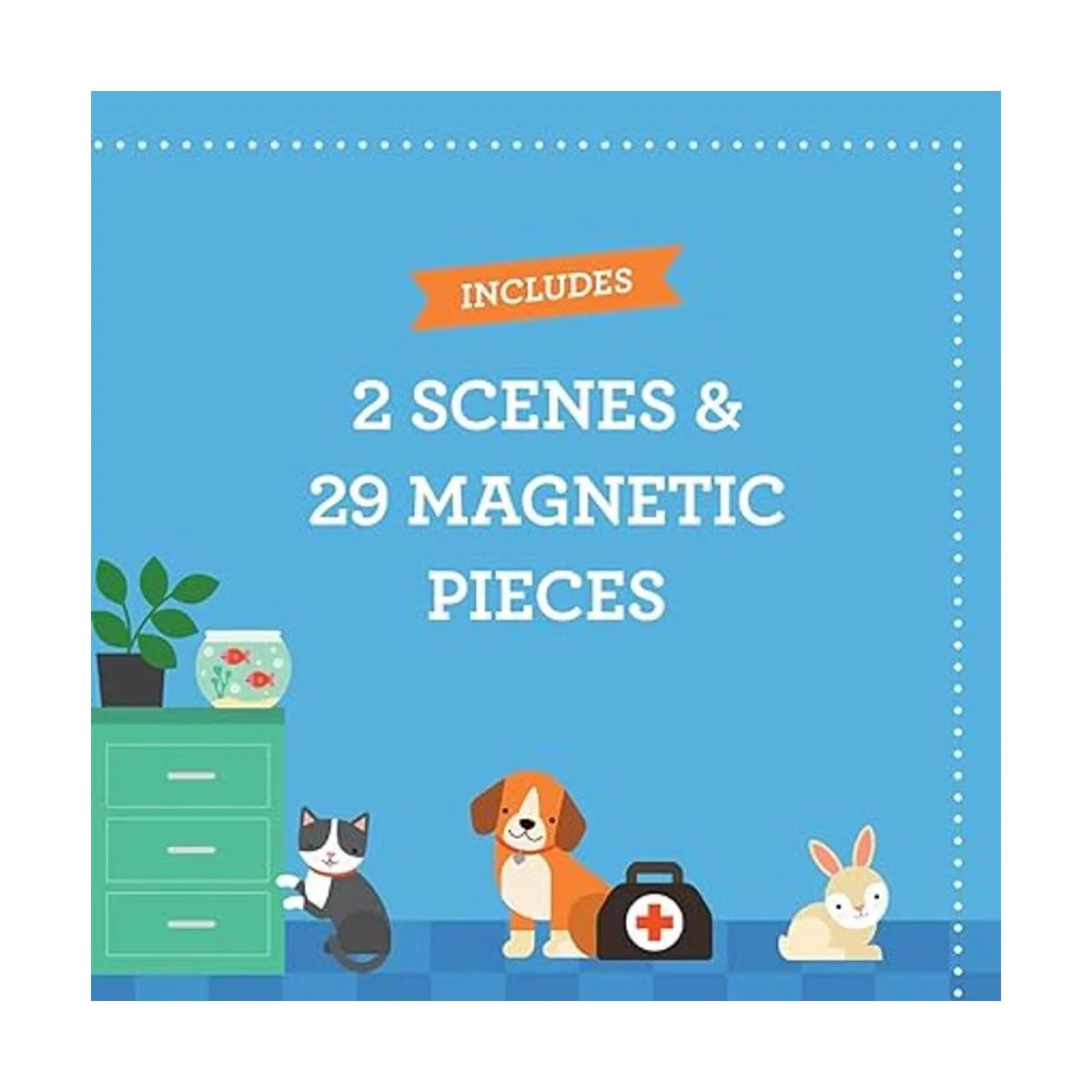 Juego imaginativo: con 2 escenas y 29 piezas magnéticas en una lata portátil, este juego está diseñado para horas de juego imaginativo, ya sea en casa o sobre la marcha. A tu pequeño le encantará imaginar historias sobre todos los animales que necesitan cuidado
