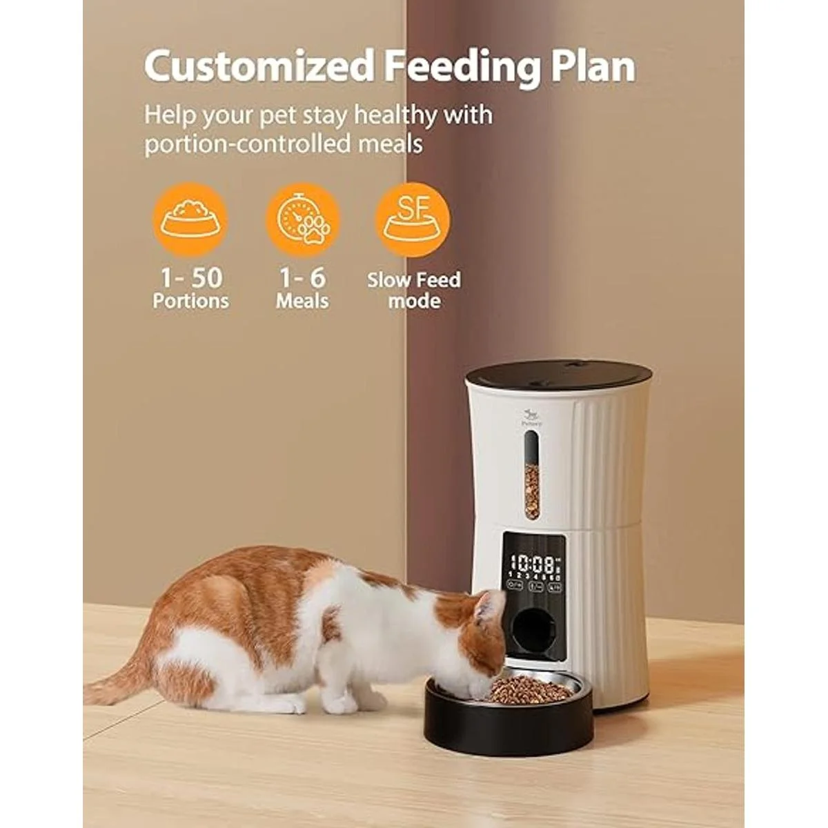 Petory Timed Automatic Cat Feeders 4L Programable Dry Food Dispenser for Cats and Small Medium Dogs 6 Meals with Desiccant Bag Dual Power Supply 10S Voice Recorder