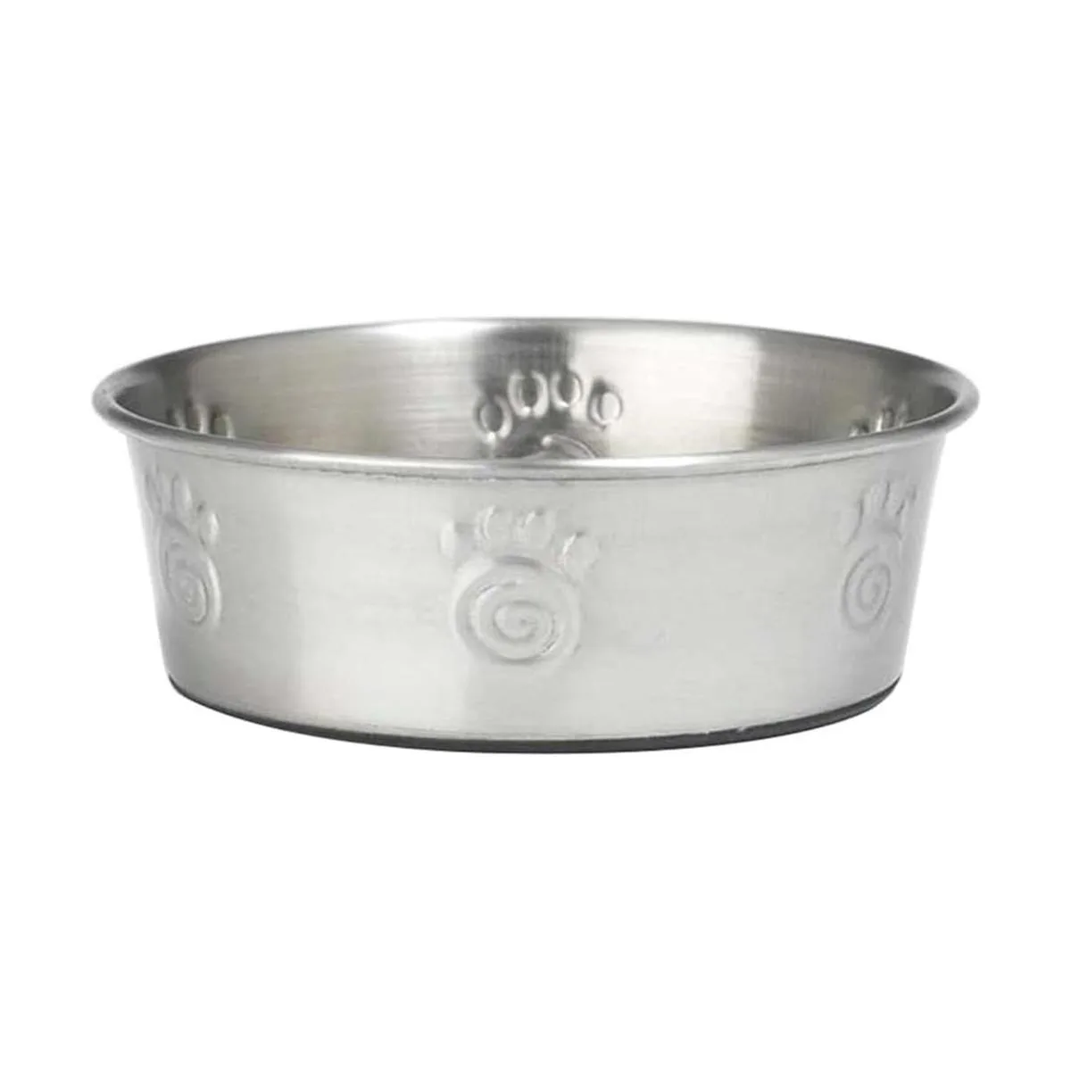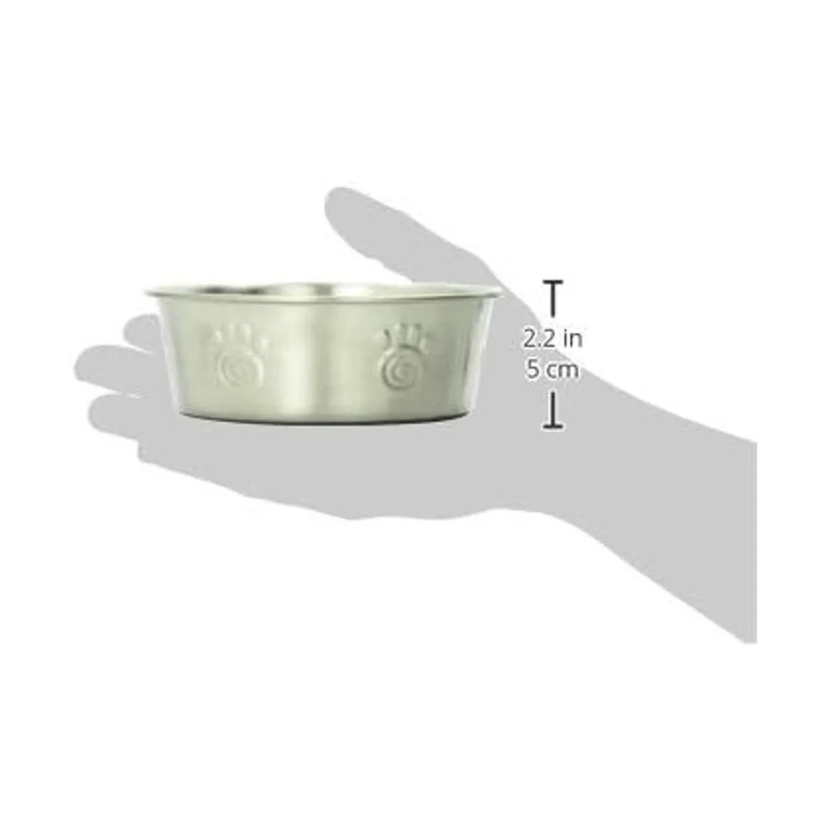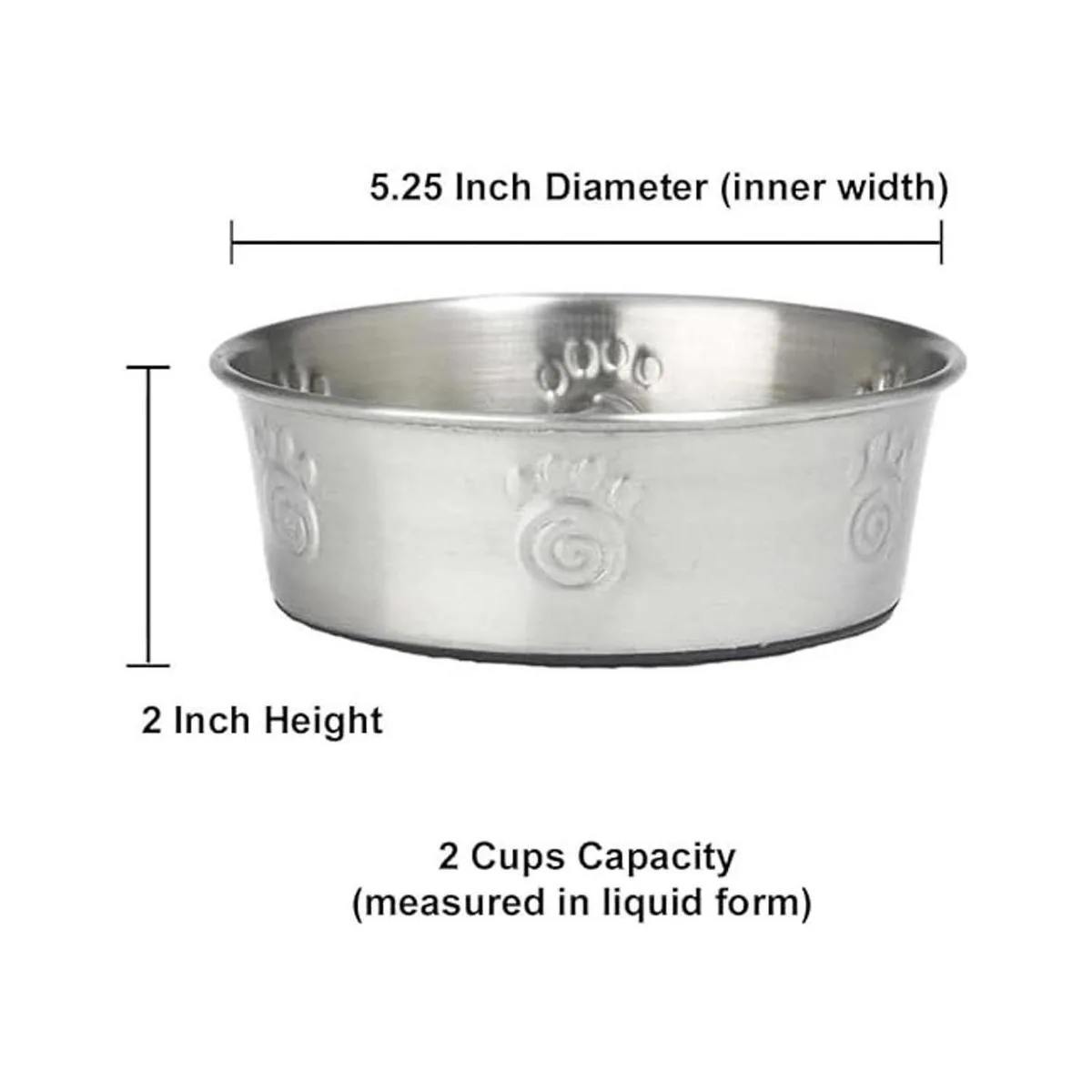 PetRageous 60047 Cayman Classic Cuenco de acero inoxidable antideslizante apto para lavavajillas, capacidad de 2 tazas, 5.25 pulgadas de diámetro, 2 pulgadas de alto, para perros pequeños y gatos de cualquier tamaño, metálico