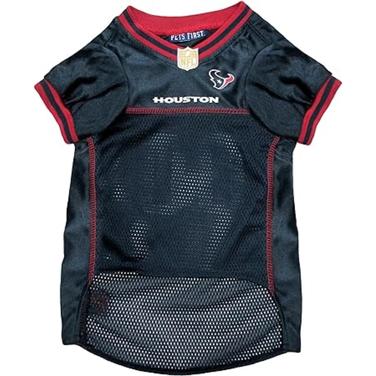 100 satén y malla de poliéster con ribete en cuello y mangas. La parte trasera tiene el logotipo impreso, los números, y la etiqueta tejida del deportista. La parte frontal tiene impreso el logotipo del equipo de NFL.