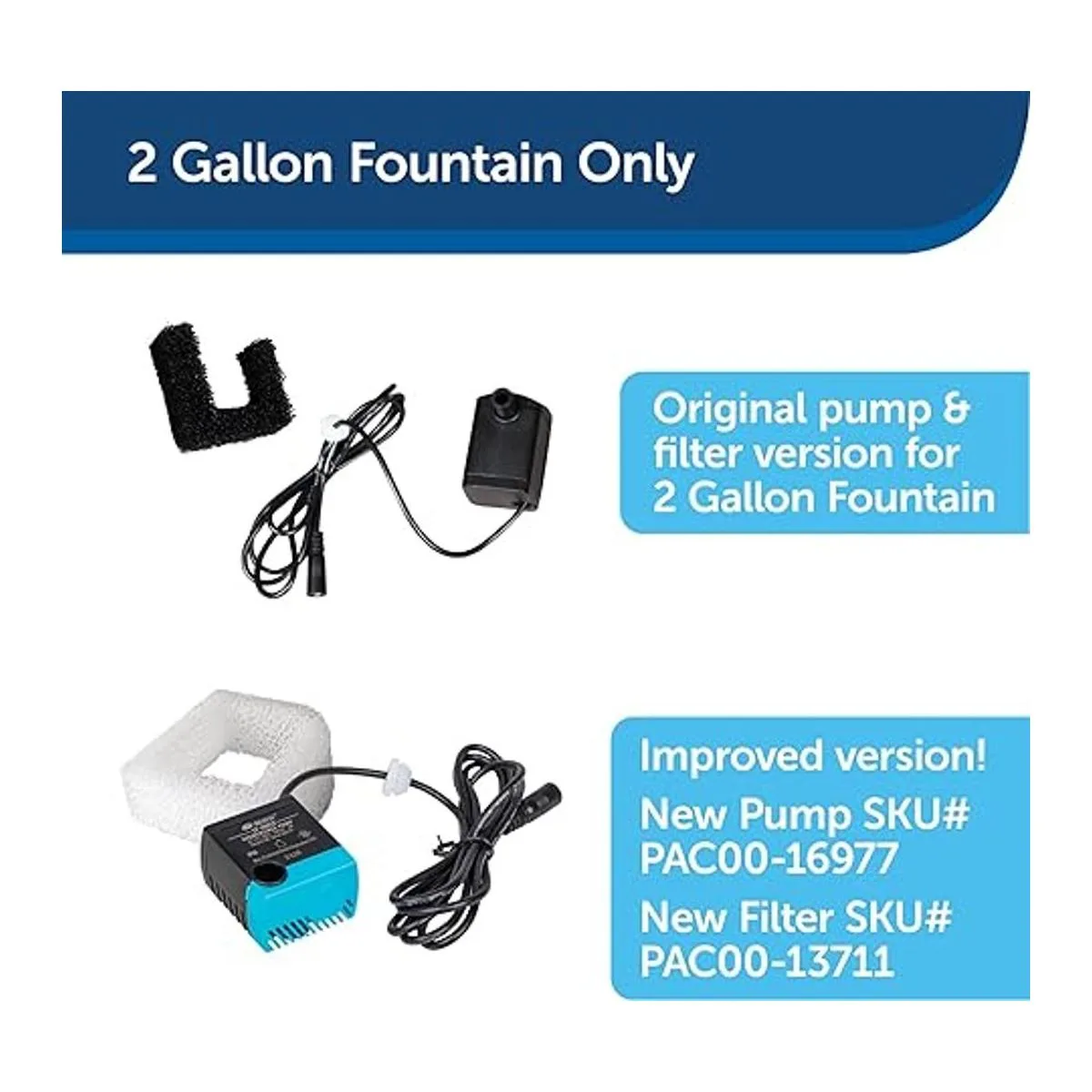 PETSAFE Fuente de 2 galones: esta bomba es la versión mejorada. Si la bomba que estás reemplazando se parece a esta bomba, no necesitas ninguna otra pieza. Si estás reemplazando la bomba de versión anterior versión negra sólida, ponte en contacto con nuestro servicio de atención al cliente para tu kit de instalación gratuito