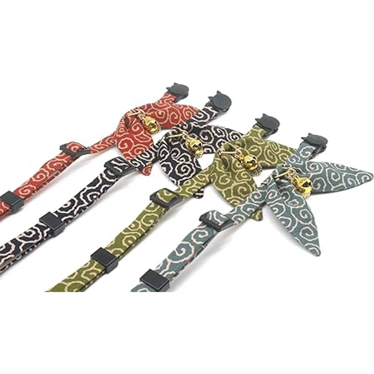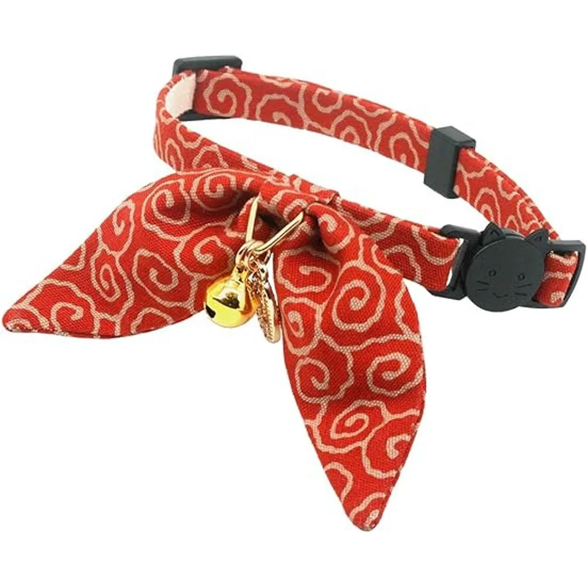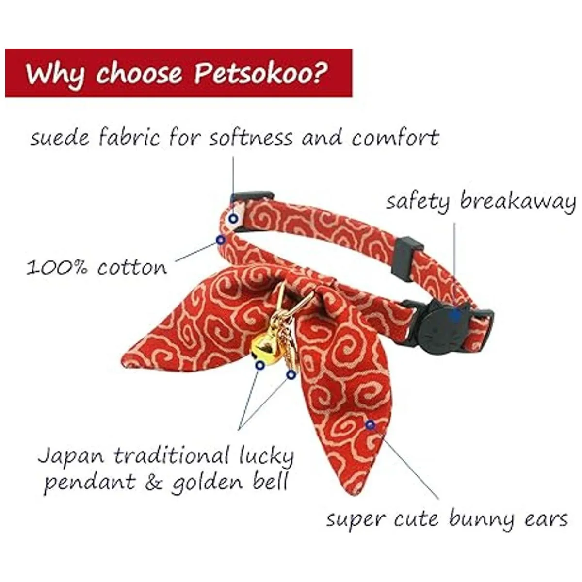 PetSoKoo Collar con diseño de orejas de conejo con campana, estampado árabesco antiguo, amuleto de la suerte japonesa Descanso de seguridad, suave, para niñas y niños machos y mujeres gatos