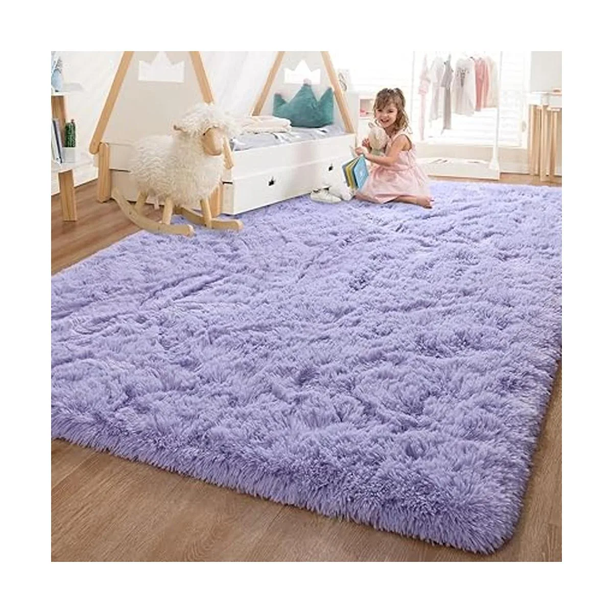 Pettop Alfombras peludas y esponjosas para dormitorio de niñas, 4 x 6 pies, suaves, moradas, alfombra antideslizante para habitación de niños, bonita alfombra de noche, habitación de bebé, dormitorio de bebé, 4 x 6 pies, color morado