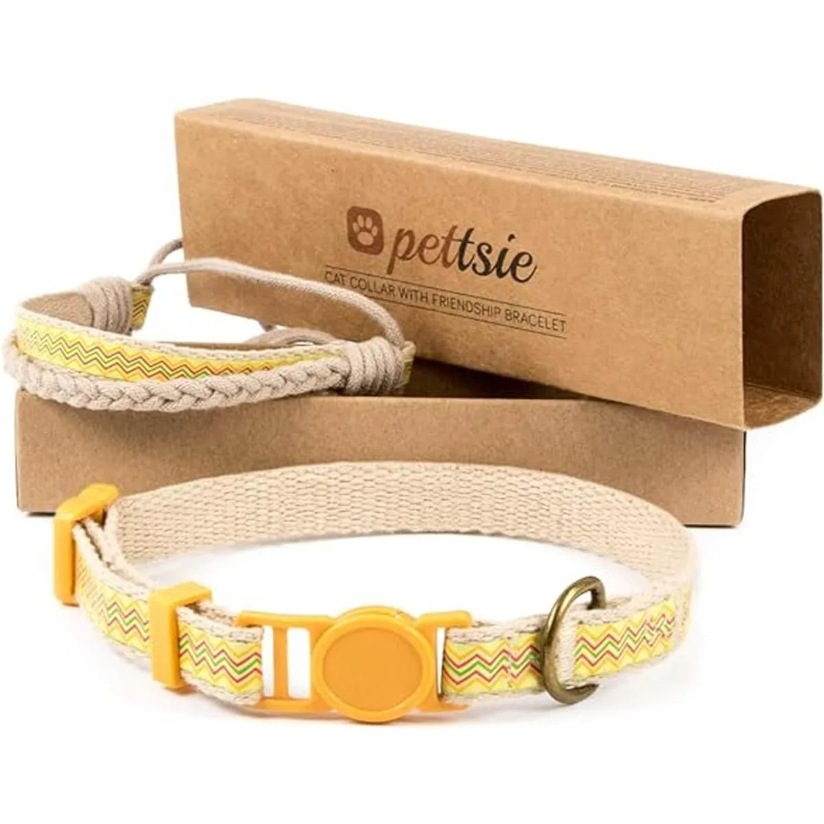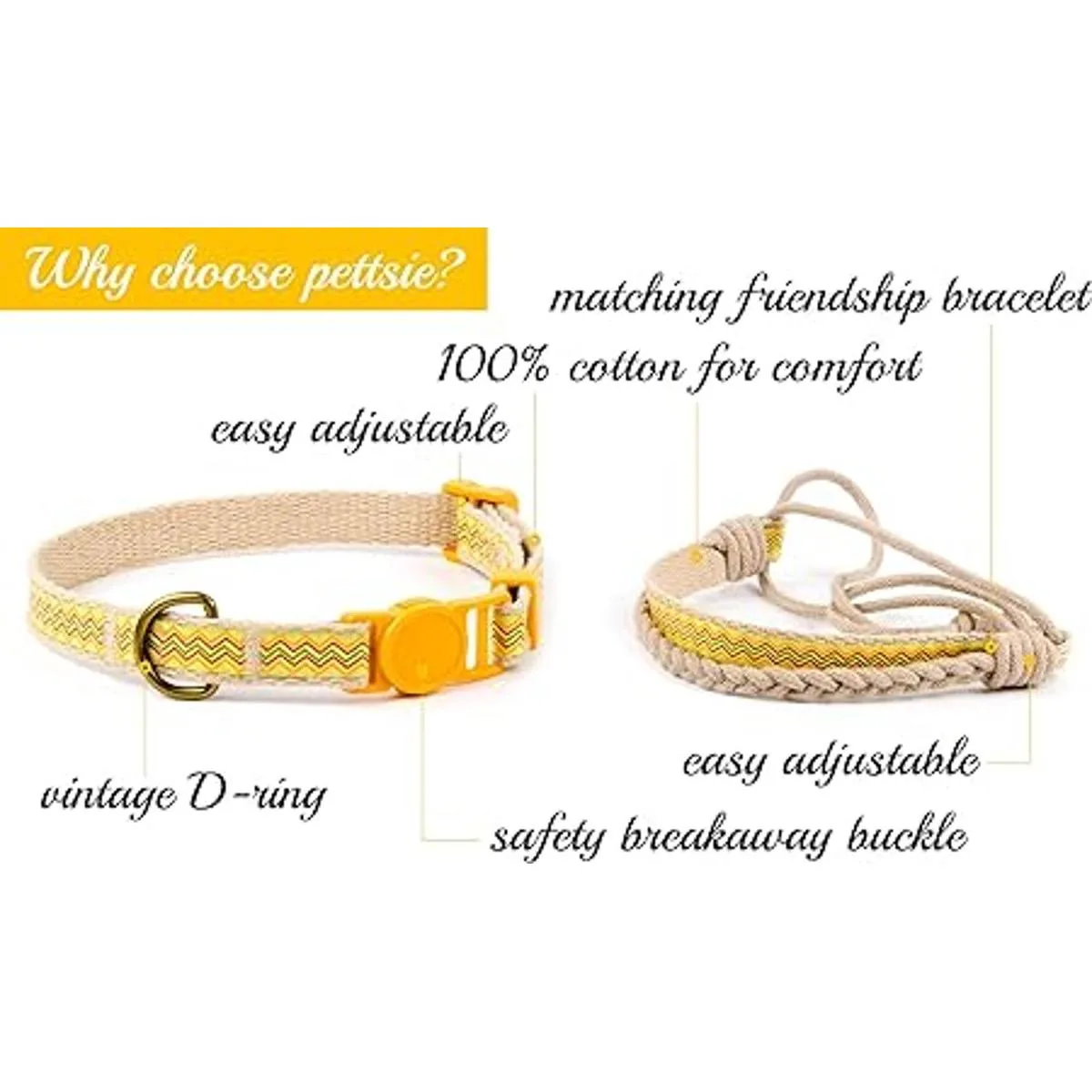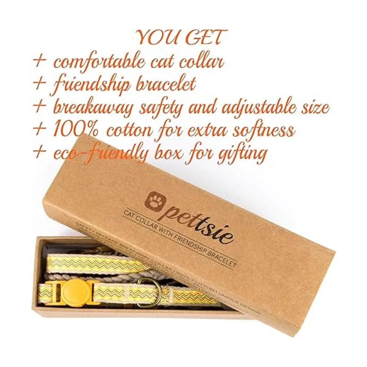Pettsie Collar de gato de gatito, pulsera de seguridad y amistad para ti, duradero, 100 algodón para mayor seguridad, fácil de ajustar, anillo en D para accesorios, caja de regalo incluida