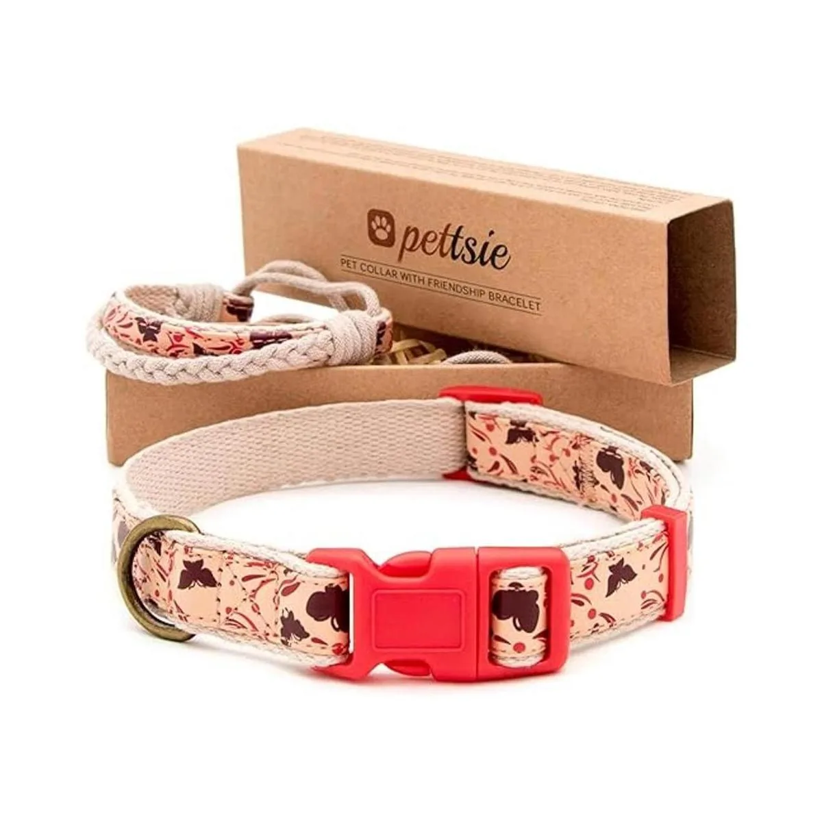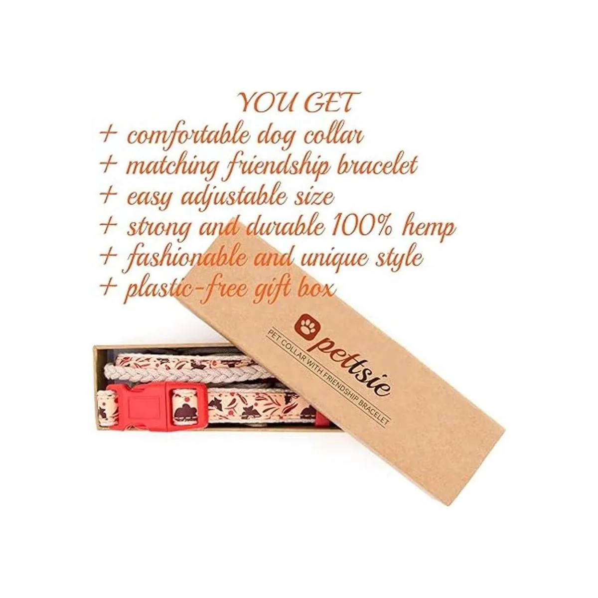 Pettsie collar de perro a juego y pulsera de amistad para propietario, tamaño ajustable pequeño y mediano, duradero, cáñamo apto para mascotas con diseño elegante, cómodo, fuerte, caja de regalo incluida.