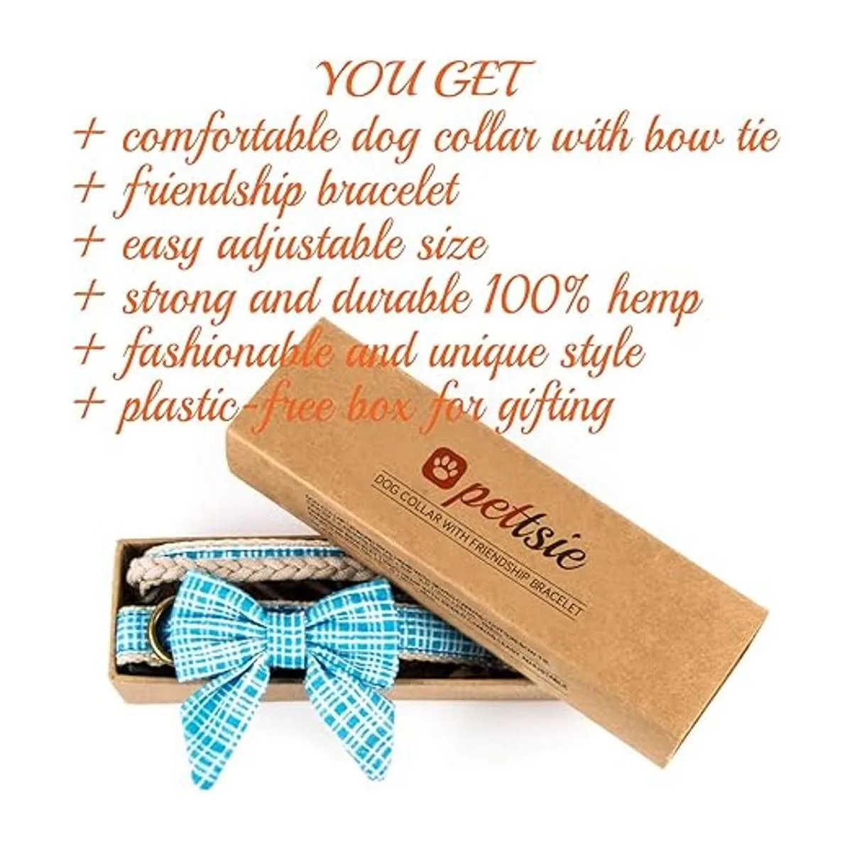 Materiales 100 respetuosos con el medio ambiente: este ligero collar de perro de la amistad con pajarita está hecho de cáñamo duradero y lona para años de pelaje. Tu pulsera para seres humanos es de algodón suave y cáñamo que se ve tan bien como se siente.