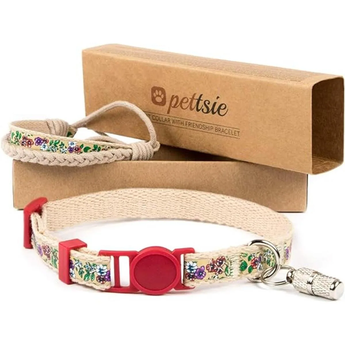 Pettsie Pulsera de seguridad y amistad con collar de gato para gato, tubo de identificación incluido, 100 algodón duradero para mayor seguridad, cómoda y suave, anillo en D para accesorios, caja de regalo incluida