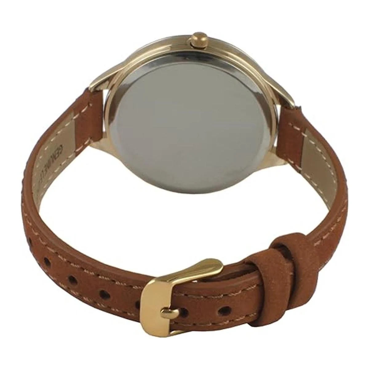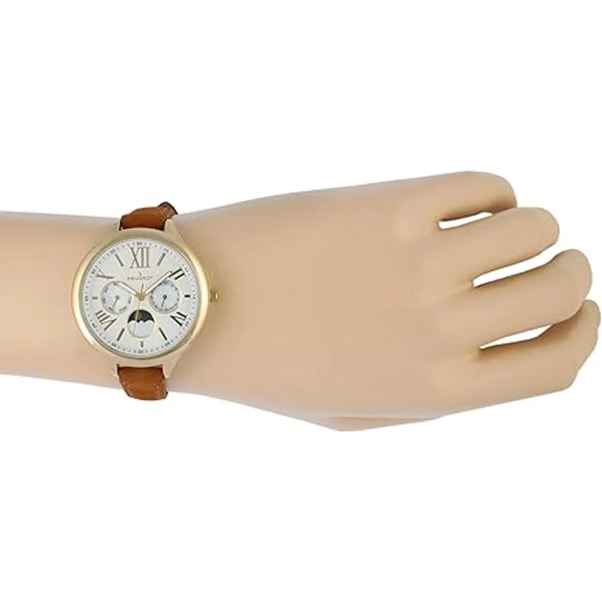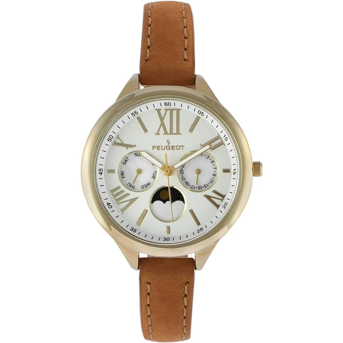 Peugeot 3053 Reloj de cuarzo analógico chapado en oro de 14 quilates con correa de ante, marrón, 11 modelo 3053