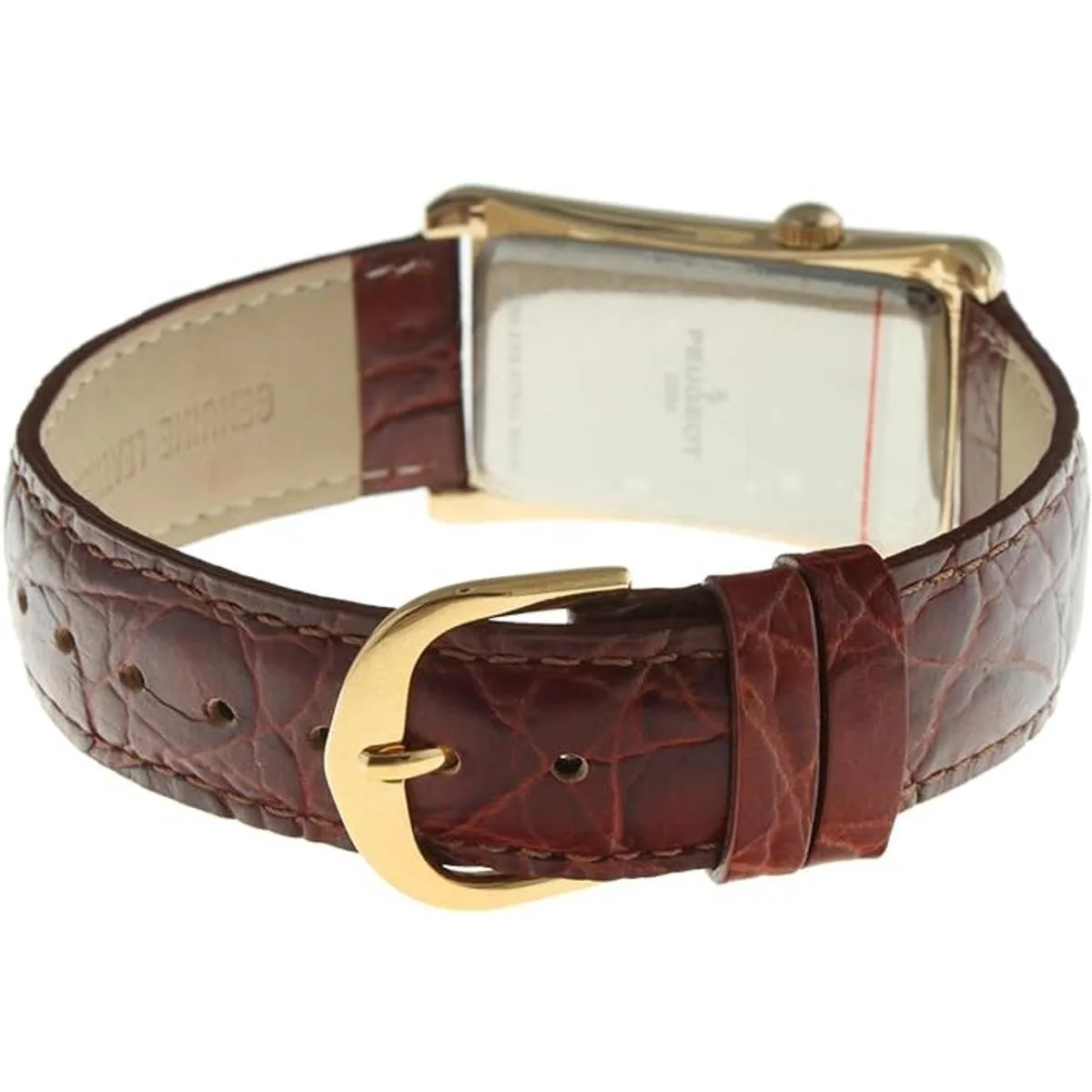 Peugeot Reloj vintage contorneado estilo médico con correa de cuero